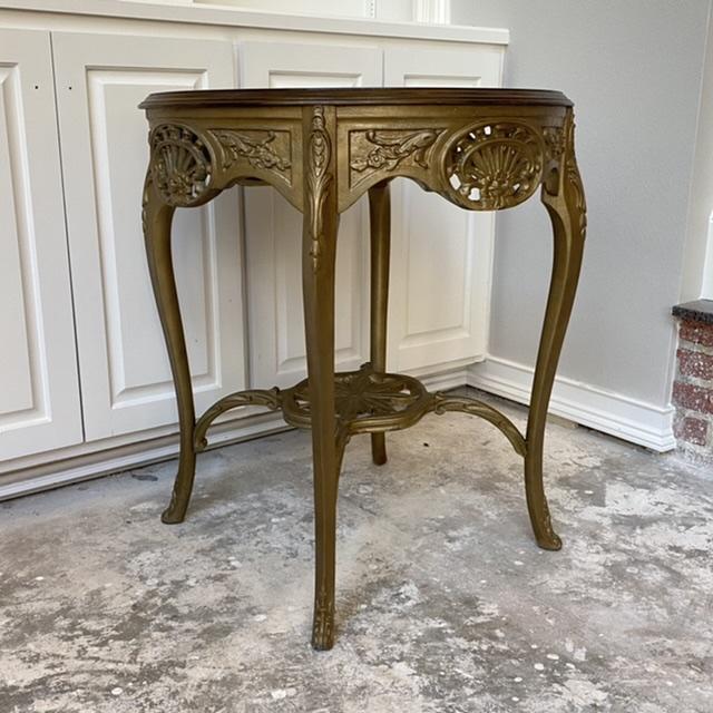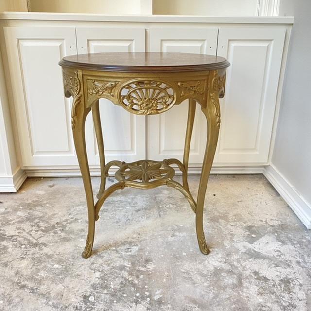 Beautiful Round Wood  Ornate Golden Accent Table
