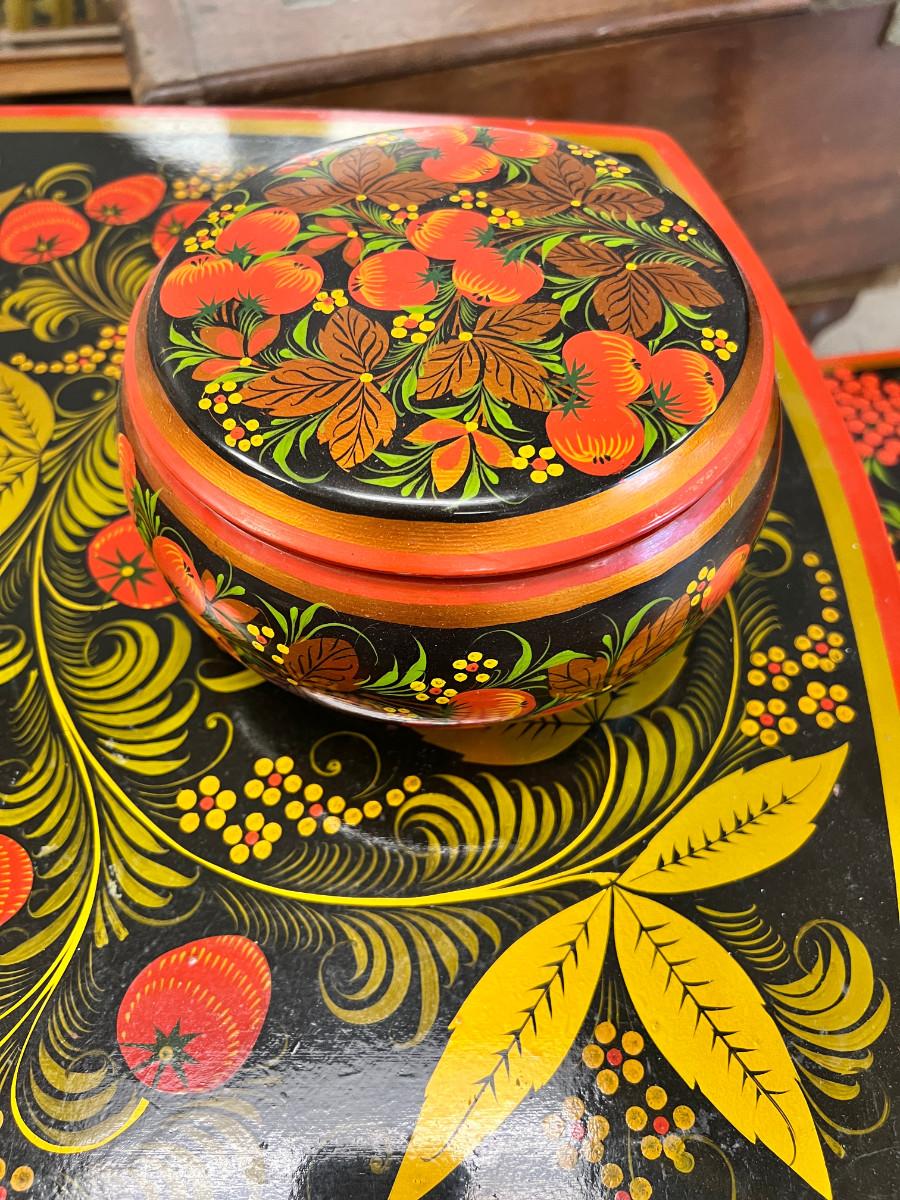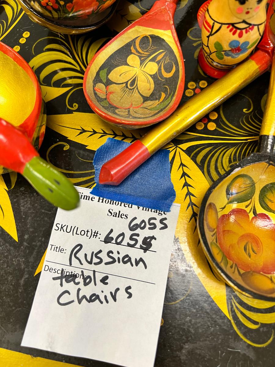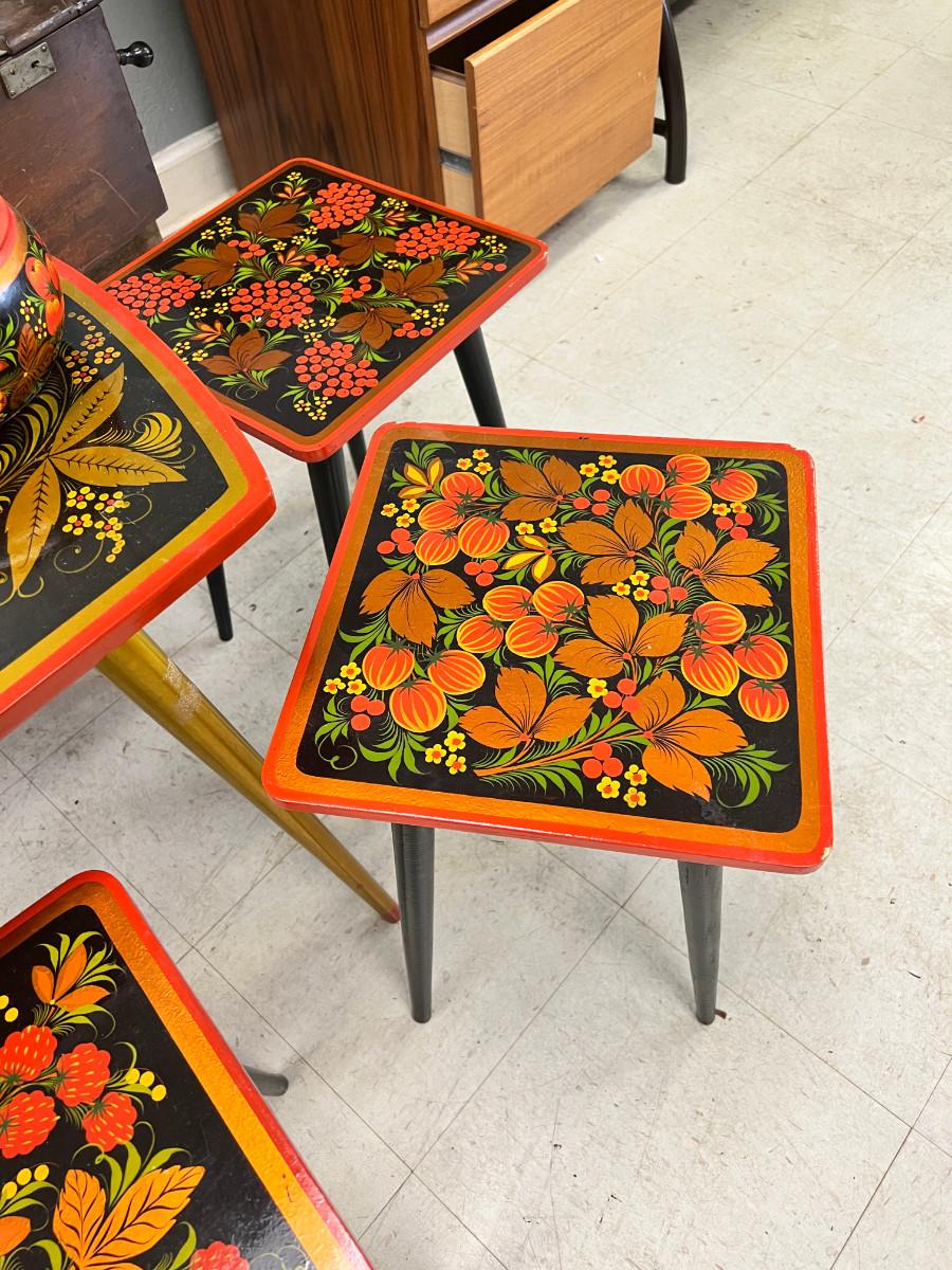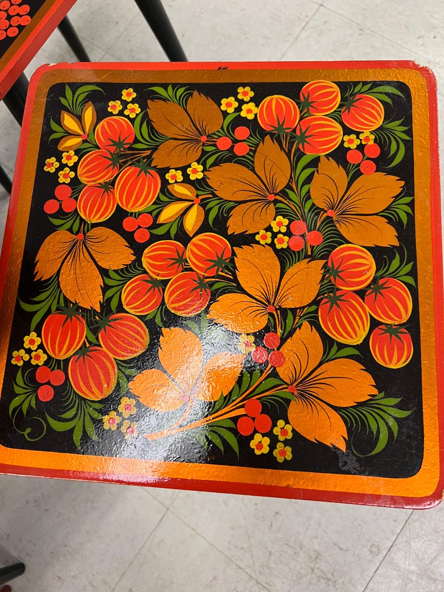 Painted in vibrant colors . legs come off table, there is one little child's chair and the entire set is kids size, but not made for play. This is an unusual set and in very good condition perfect for the right setting. There is no reserve on this item .