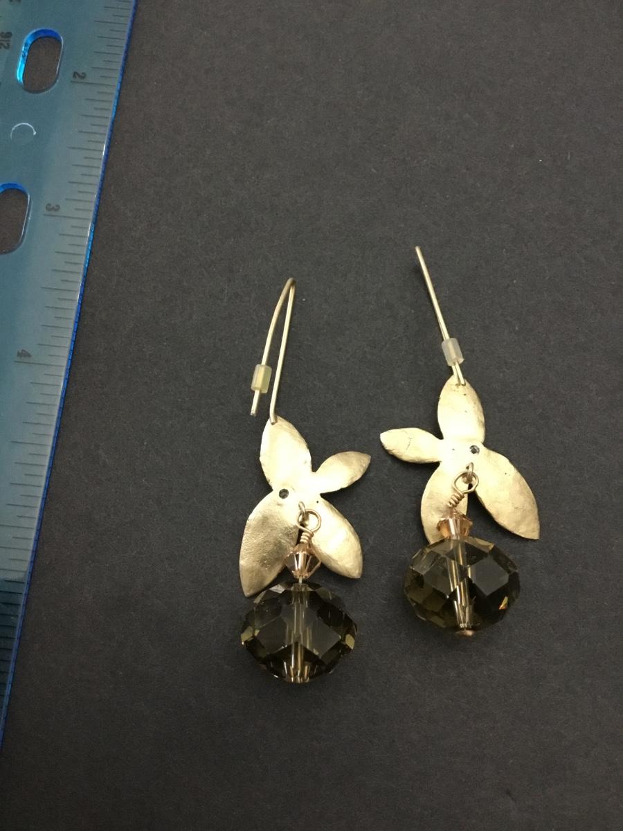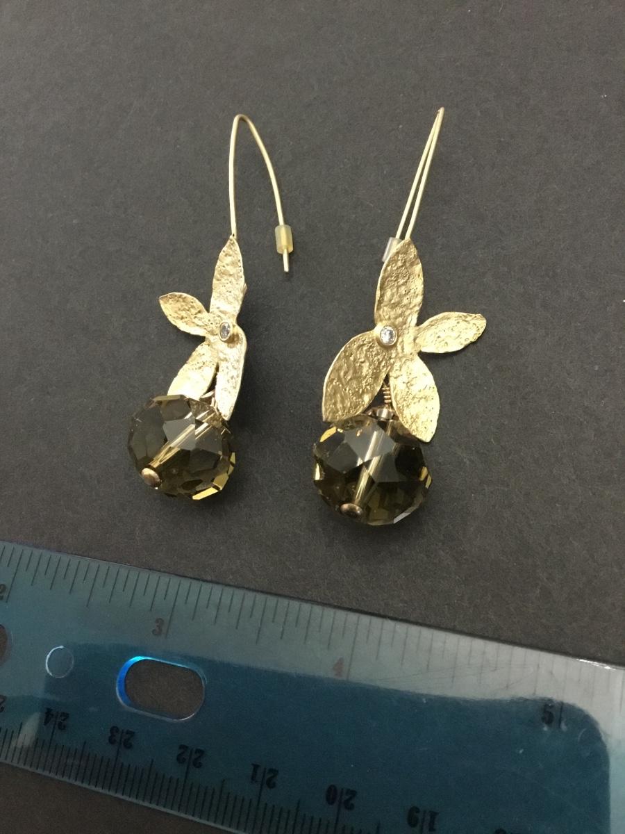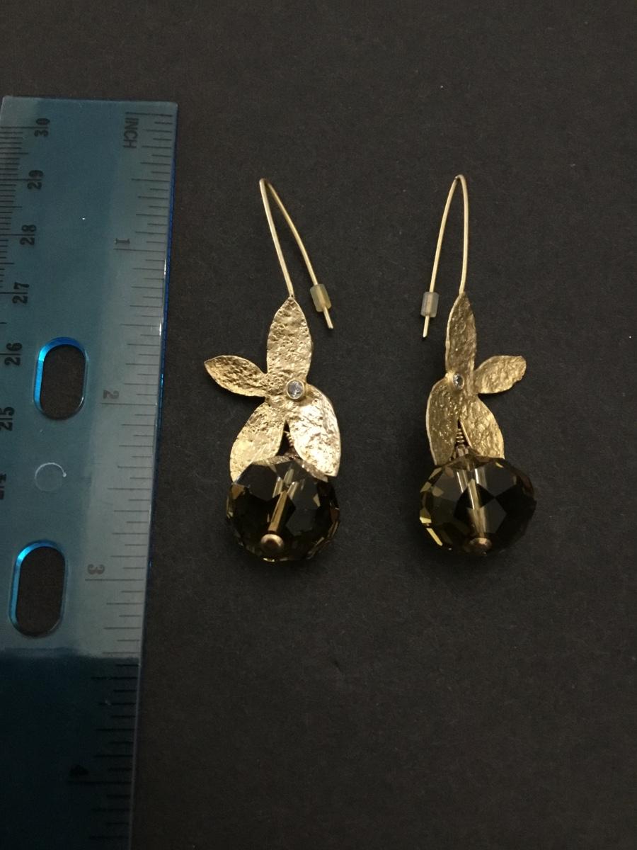 Beautiful satin, gold, toned, crystal beard, statement, earrings
