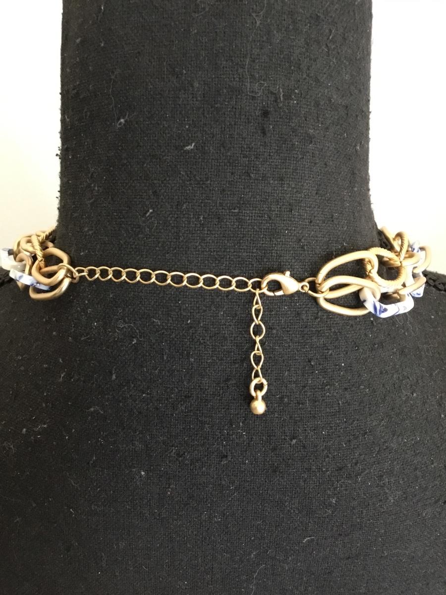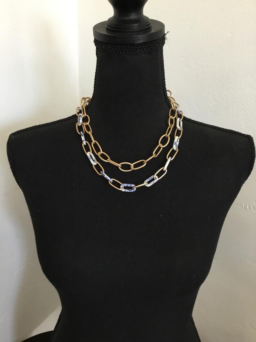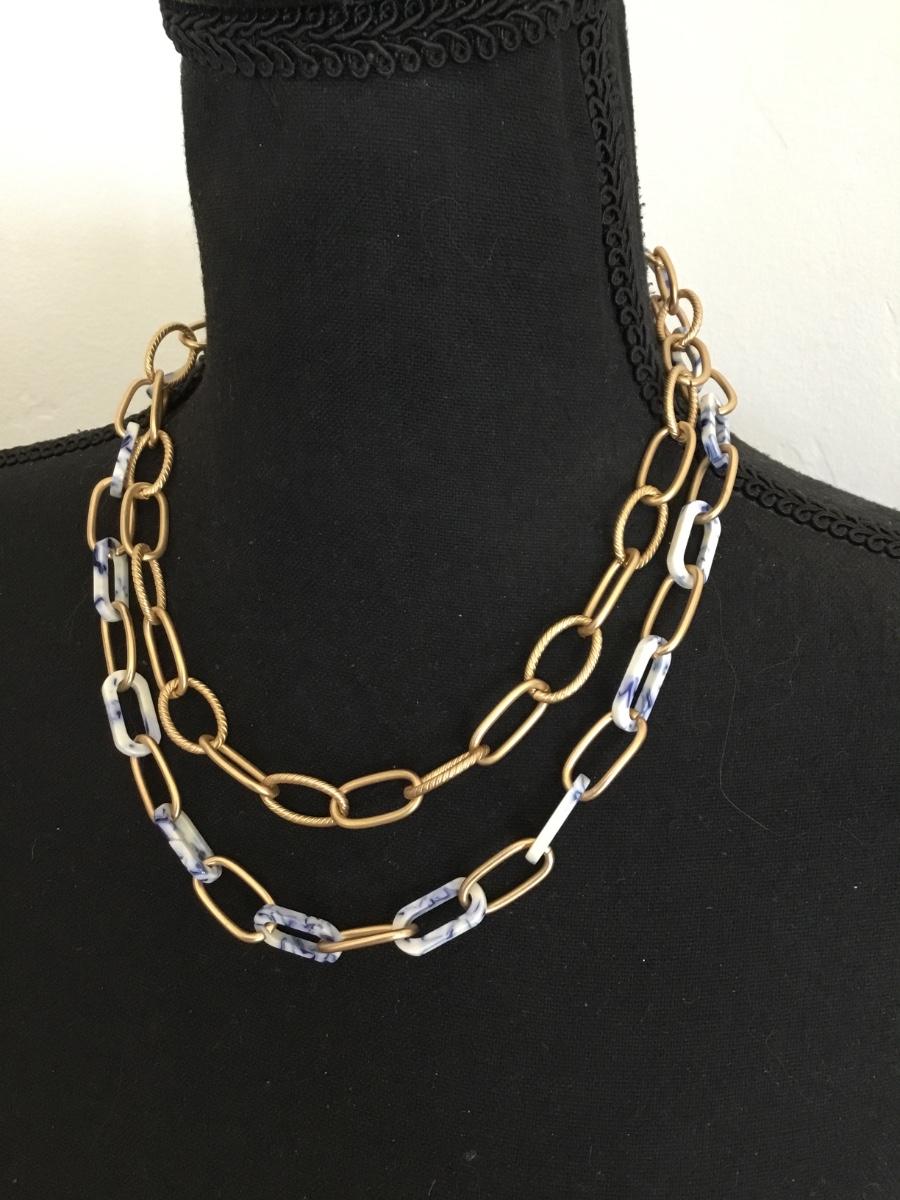 Beautiful satin, gold, toned, faux, stone chain-link double strand necklace