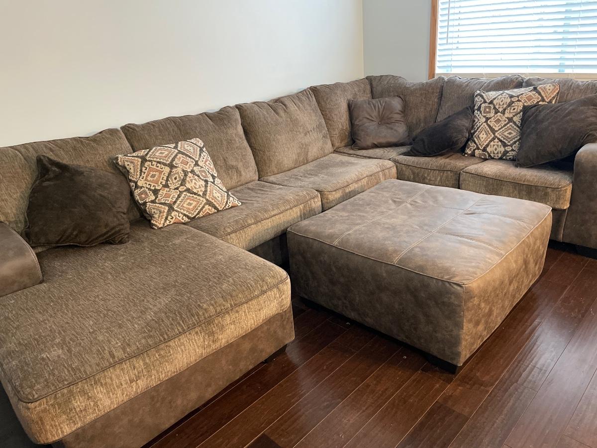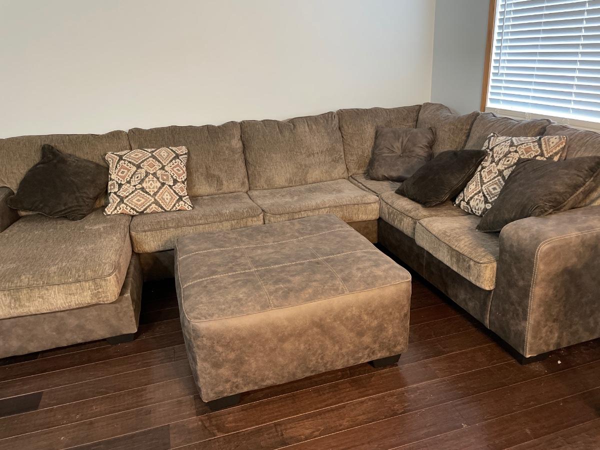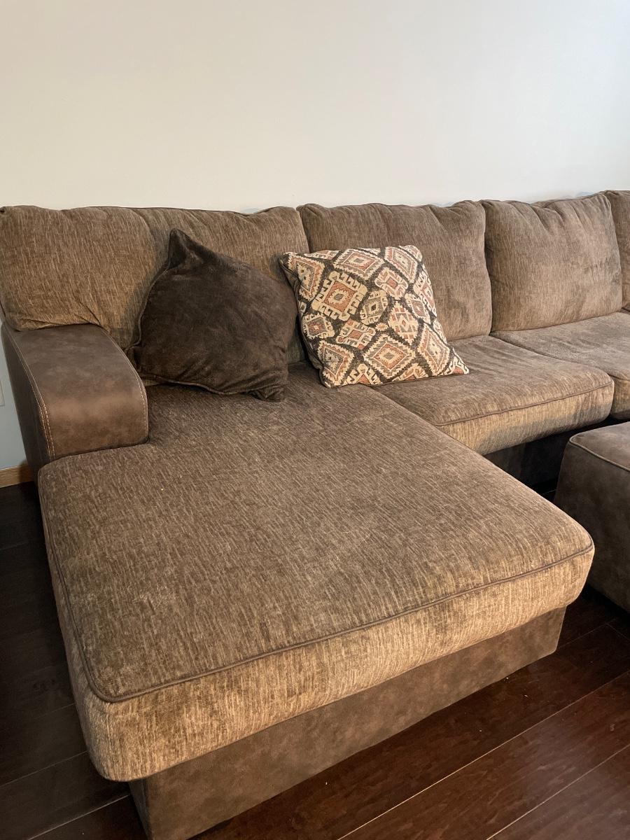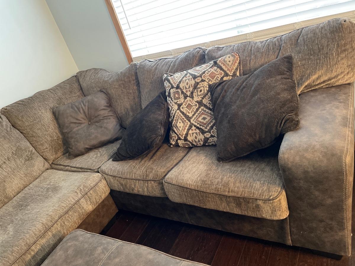 This charcoal grey sectional is super soft and in great condition. There is a cat living in the house so not appropriate for anyone with allergies
