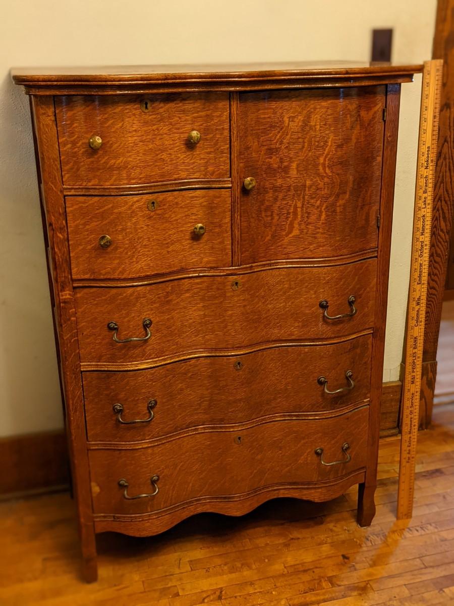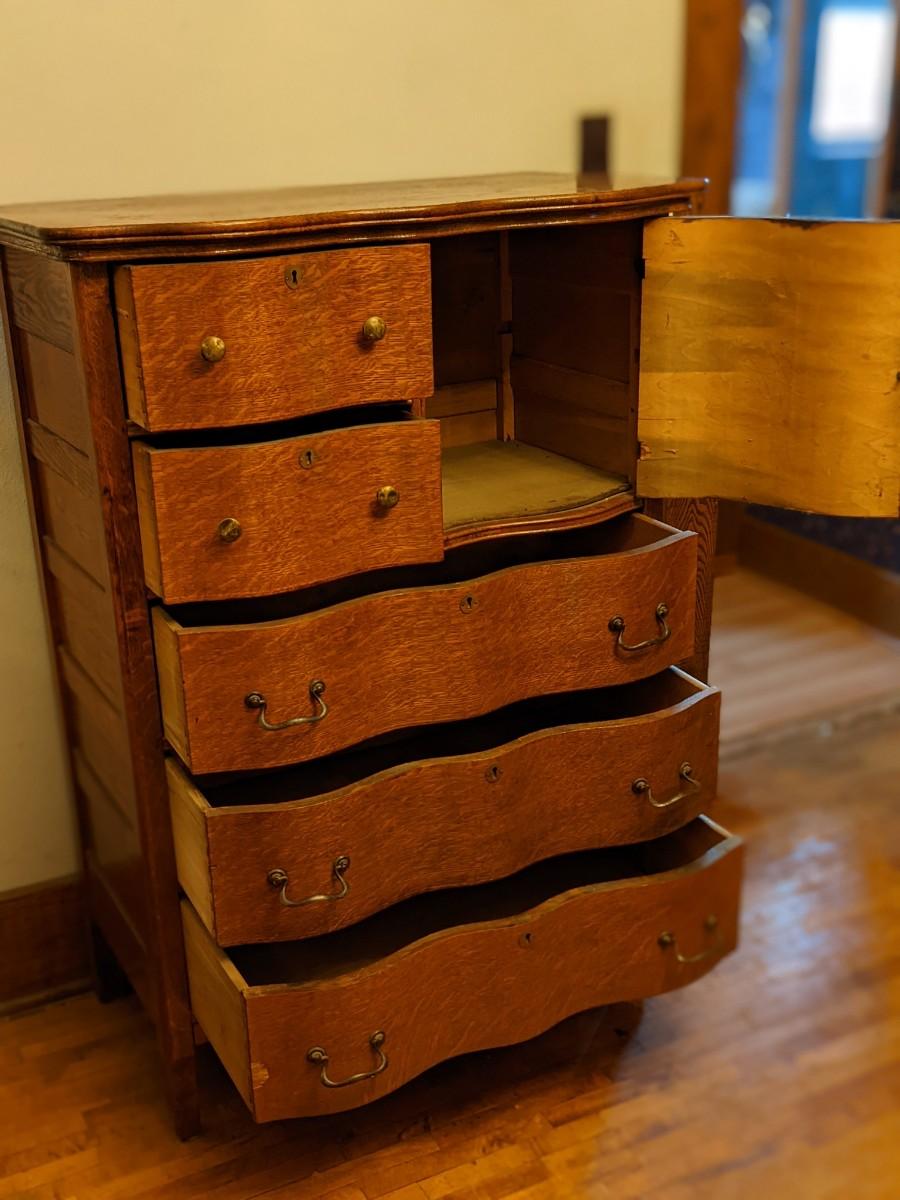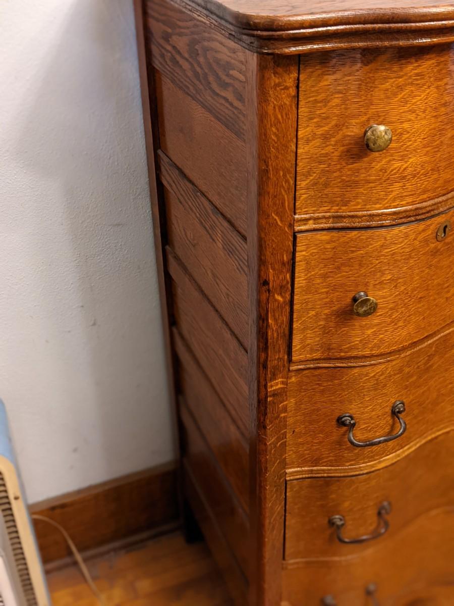 Beautiful Serpentine Oak Bonnet Chest