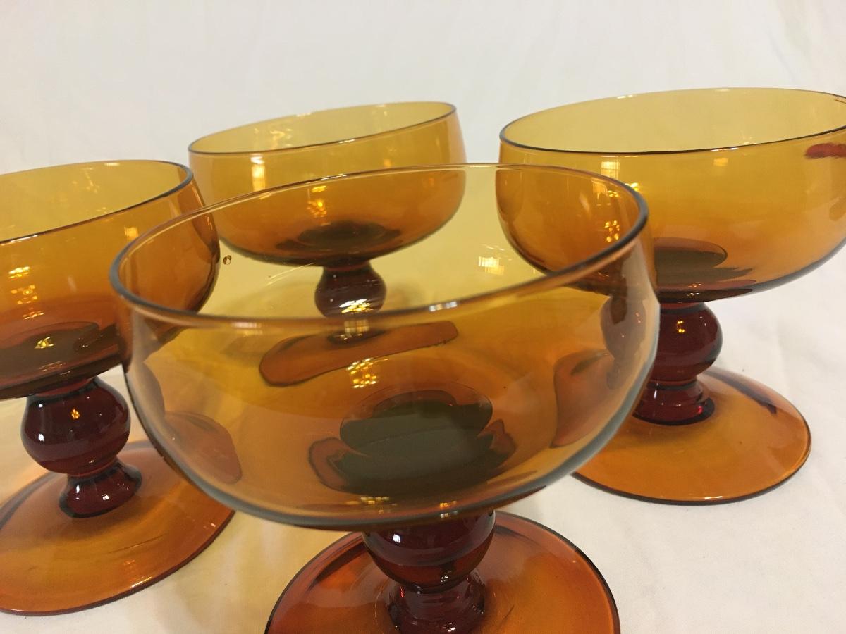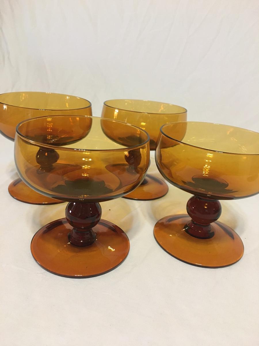 Beautiful set 4 AMBER Colored CHAMPAGNE WINE GLASSES