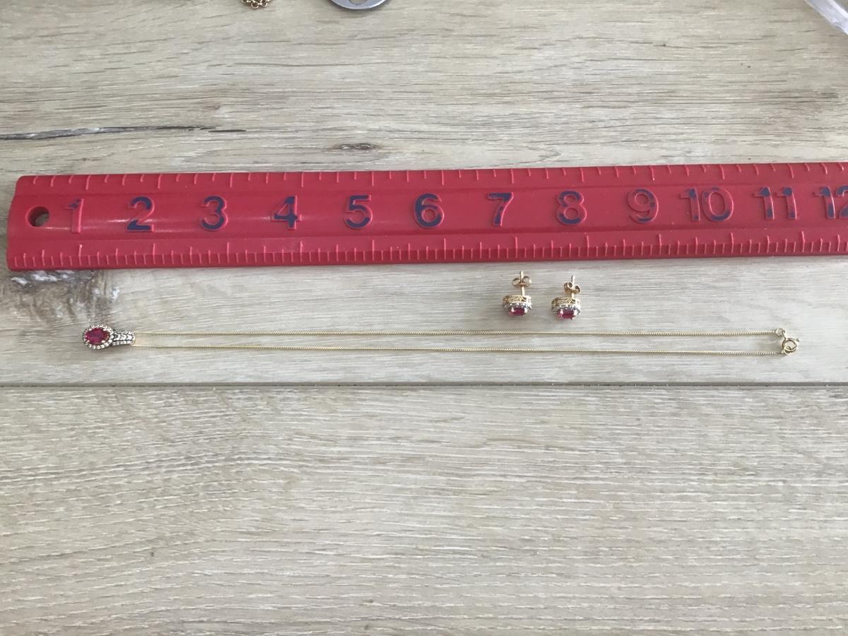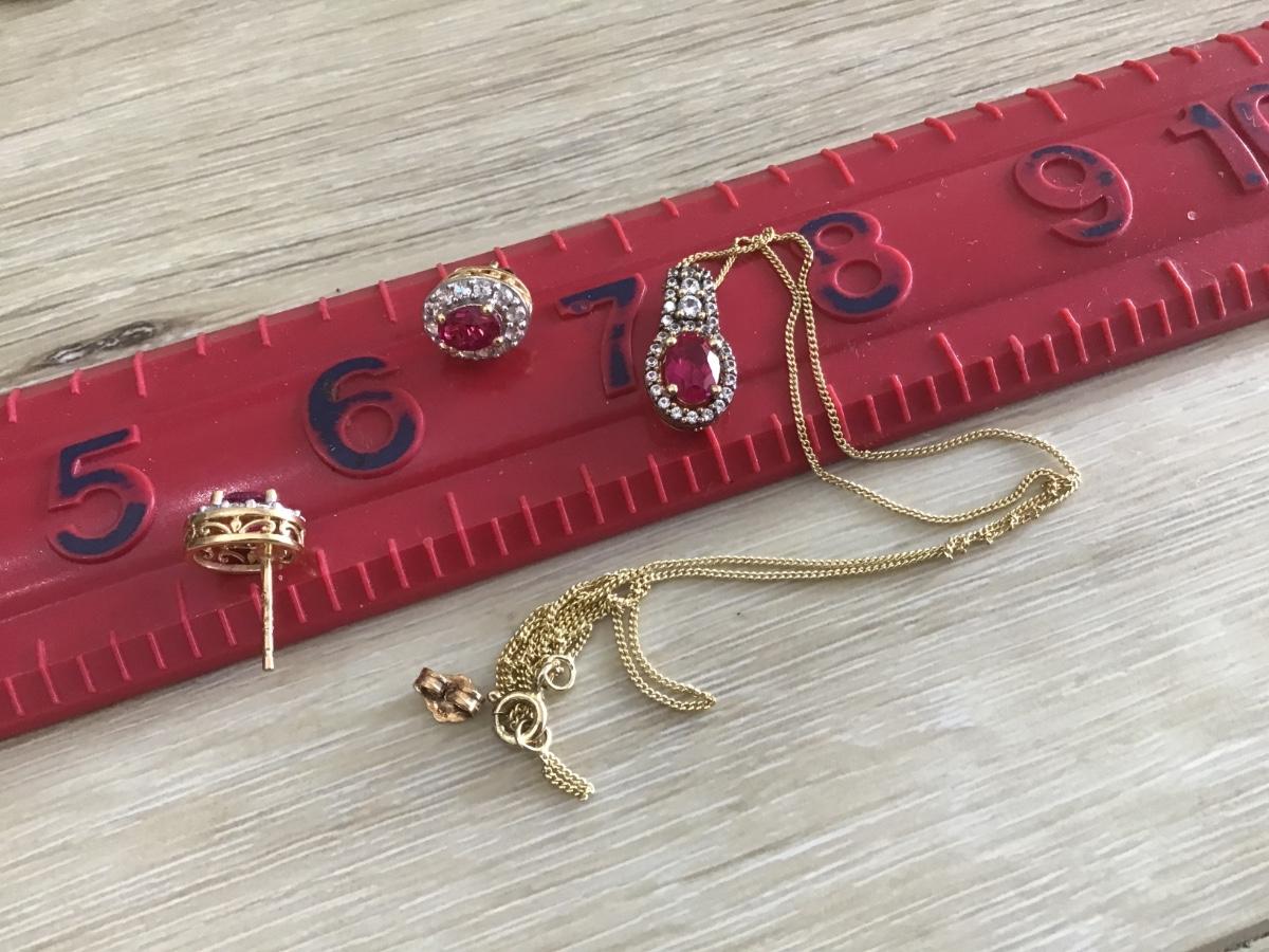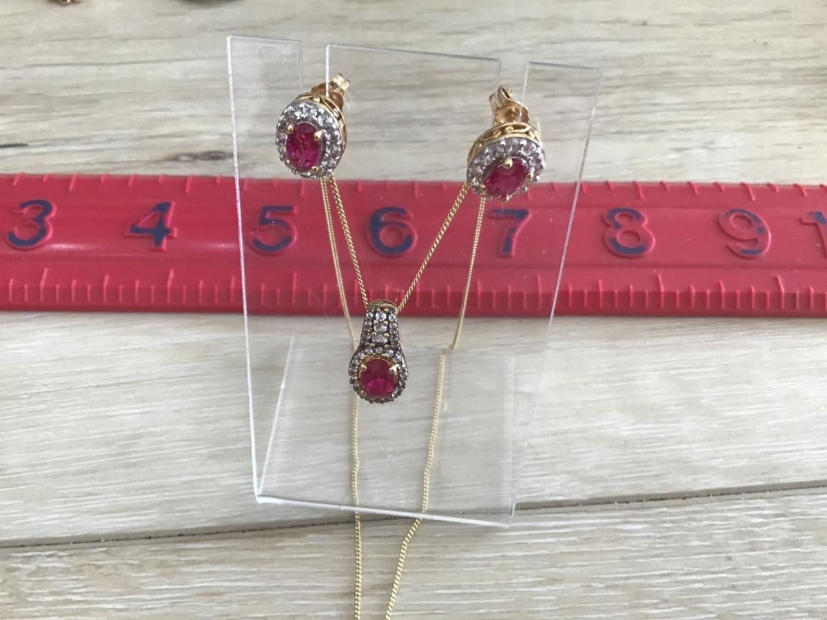 Beautiful Set 925 Marked Ruby Colored Type Stones