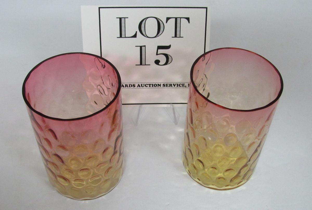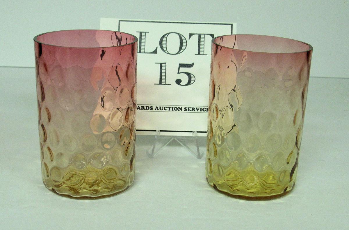 Beautiful Set of Two Antique Amberina Inverted Baby Thumbprint Tumblers