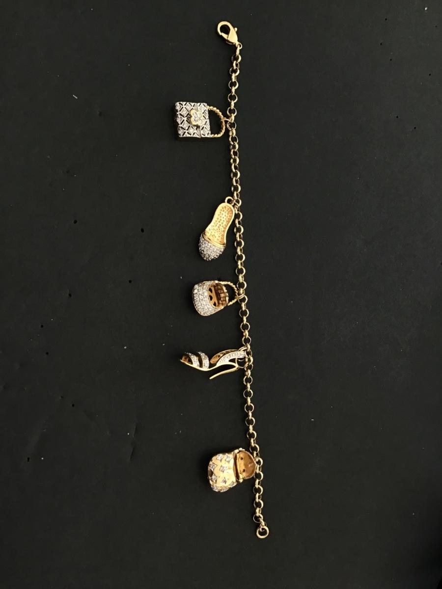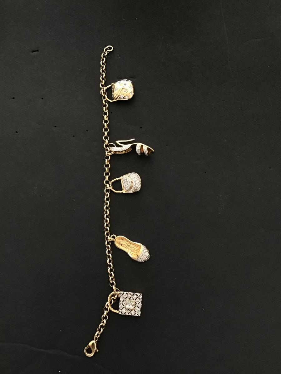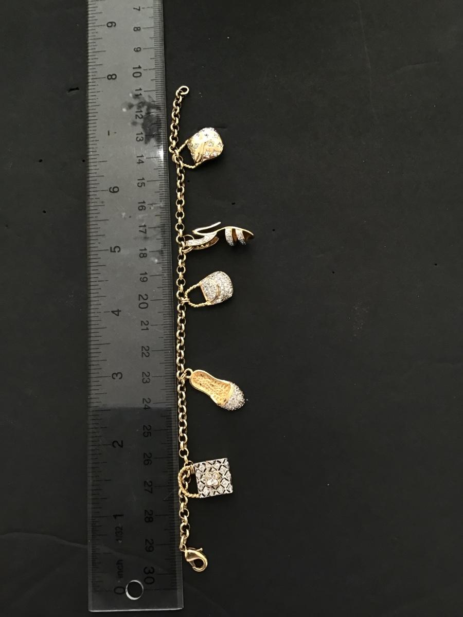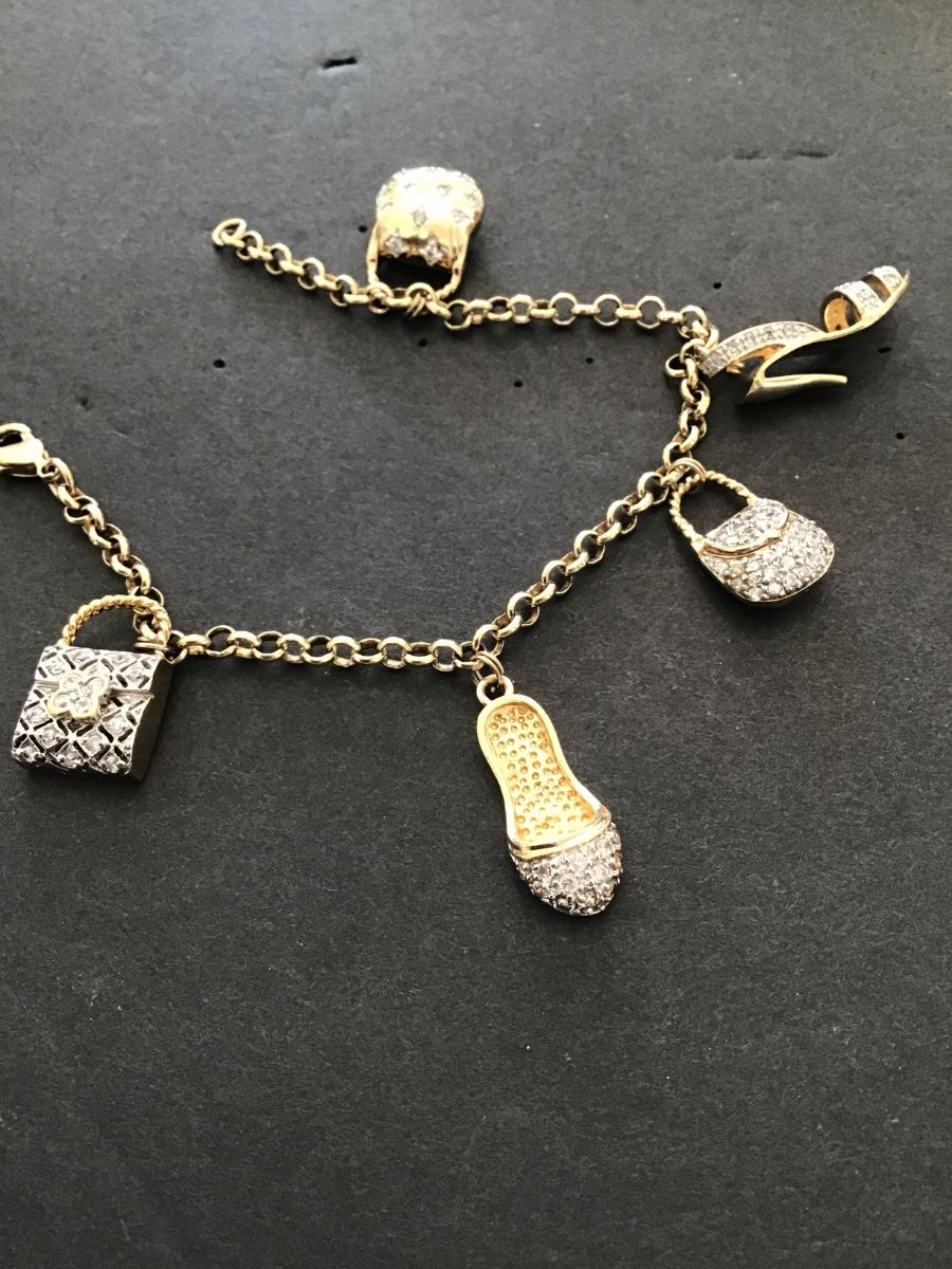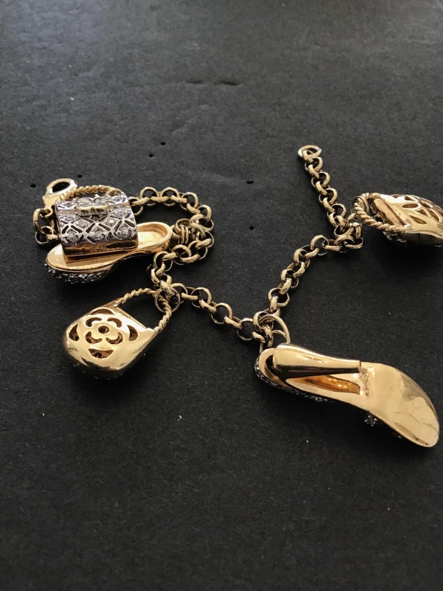 Beautiful seta ,gold tone, rhinestone charm bracelet. Please see attached photos.