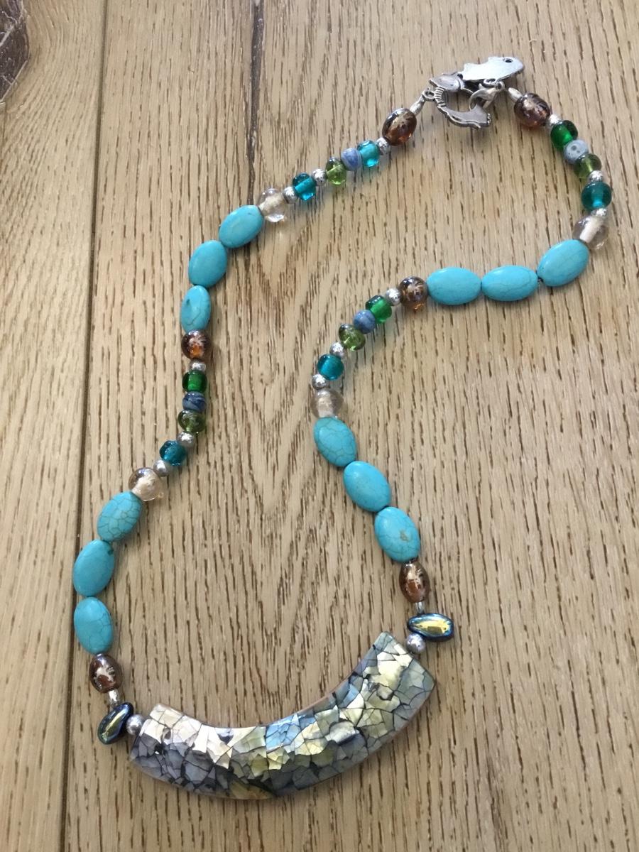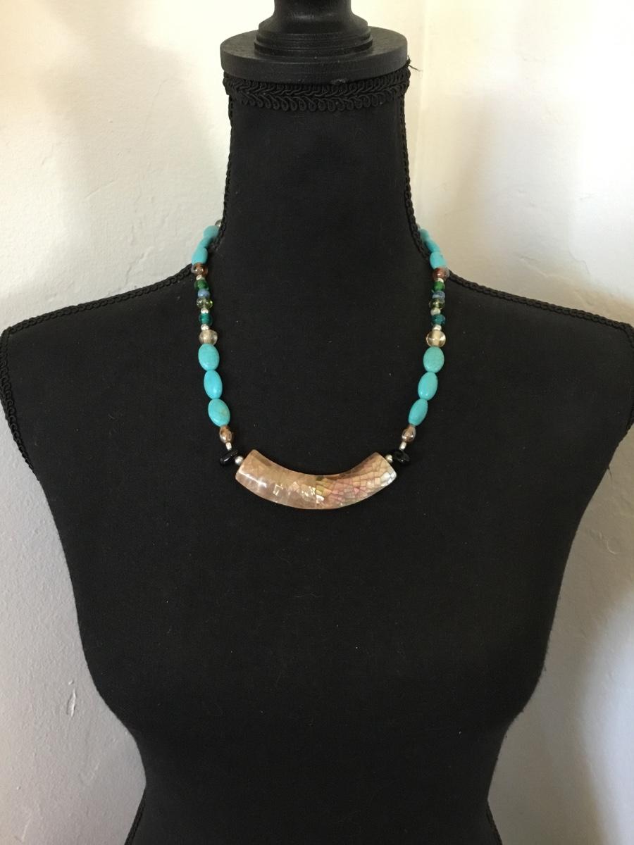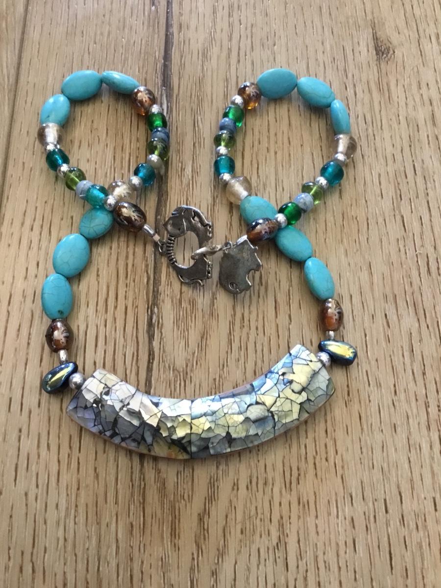 Beautiful shell, faux turquoise &, gemstone, elephant, toggle statement necklace, very beautiful