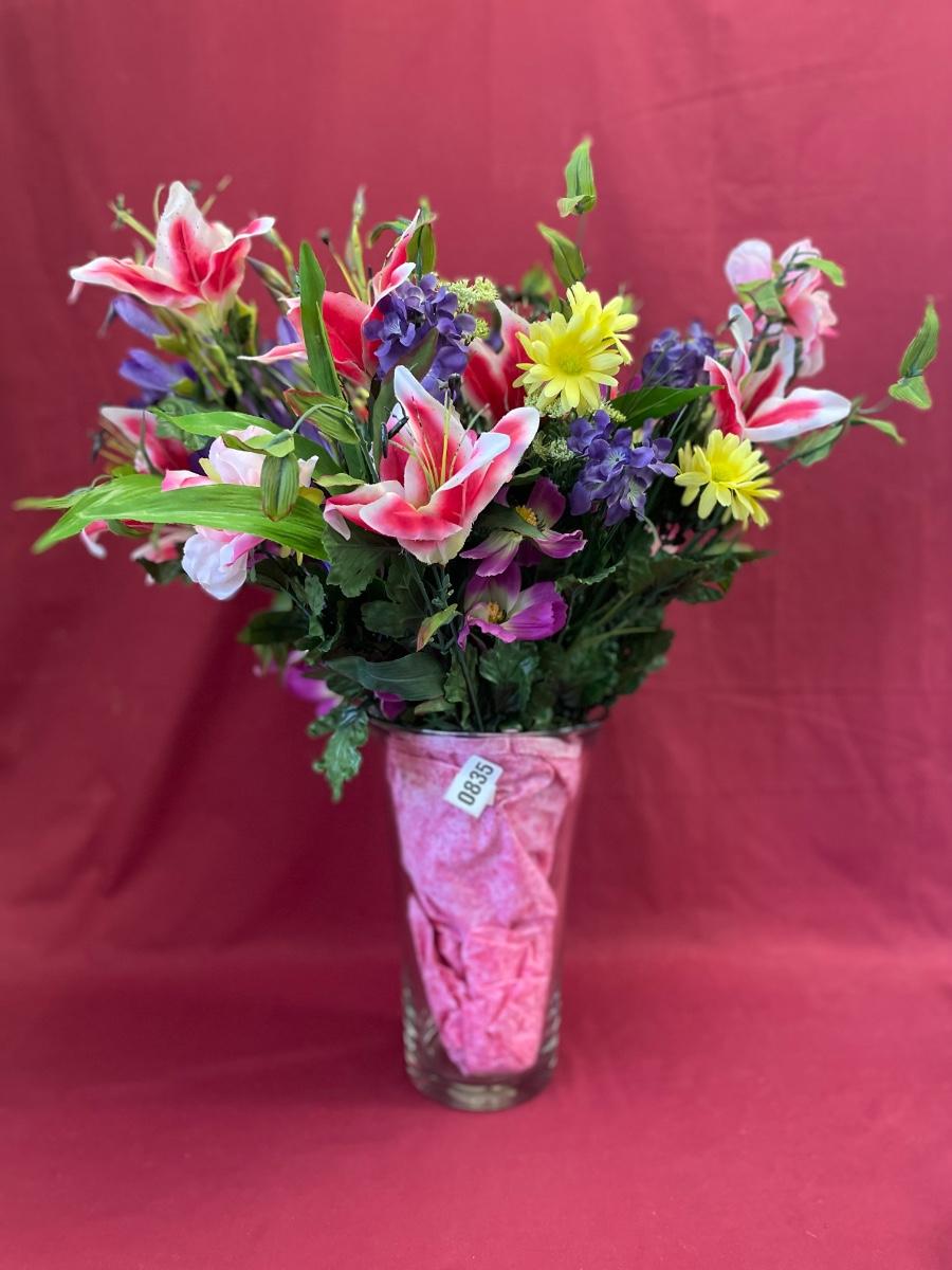 Beautiful silk floral arrangement in heavy vase