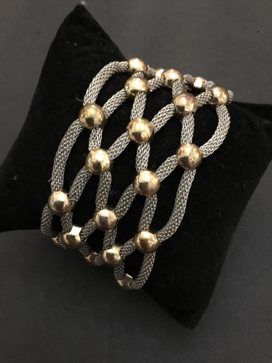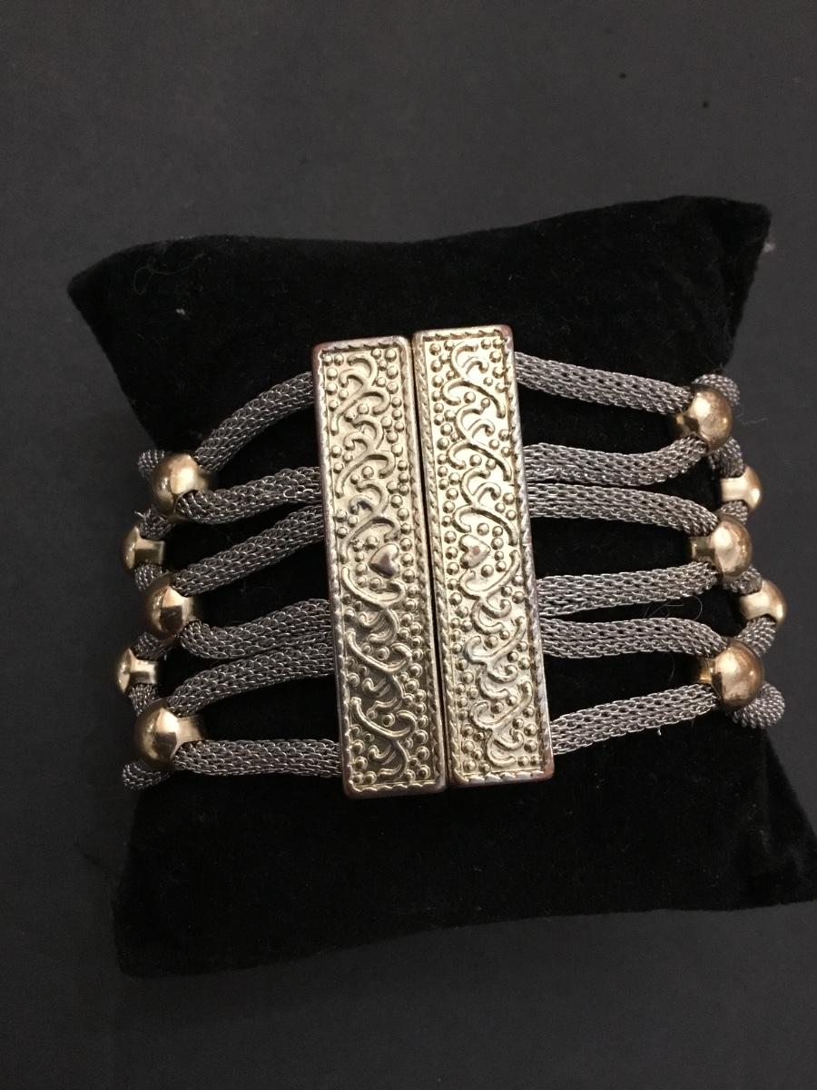 Beautiful, silver and gold, toned mesh, magnetic wide bracelet