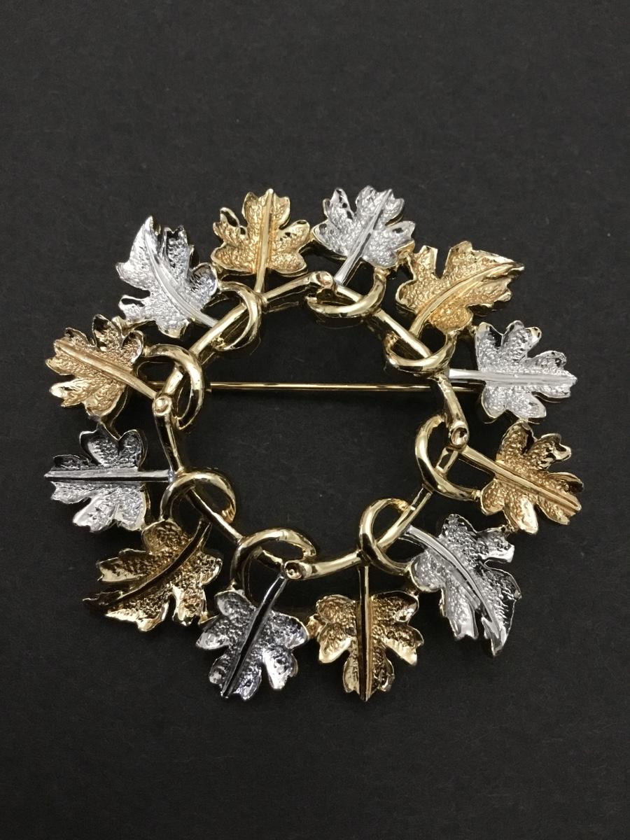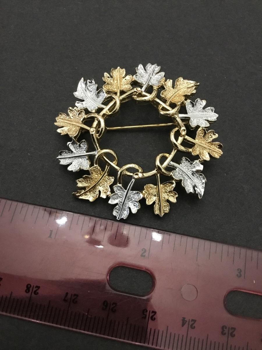 Beautiful, silver and gold toned, Sarah Coventry leaf brooch