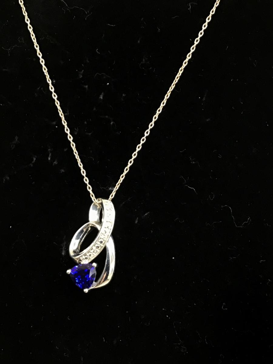 Beautiful Silver Pendant And Italy Chain Blue Sapphire Type Color Stone