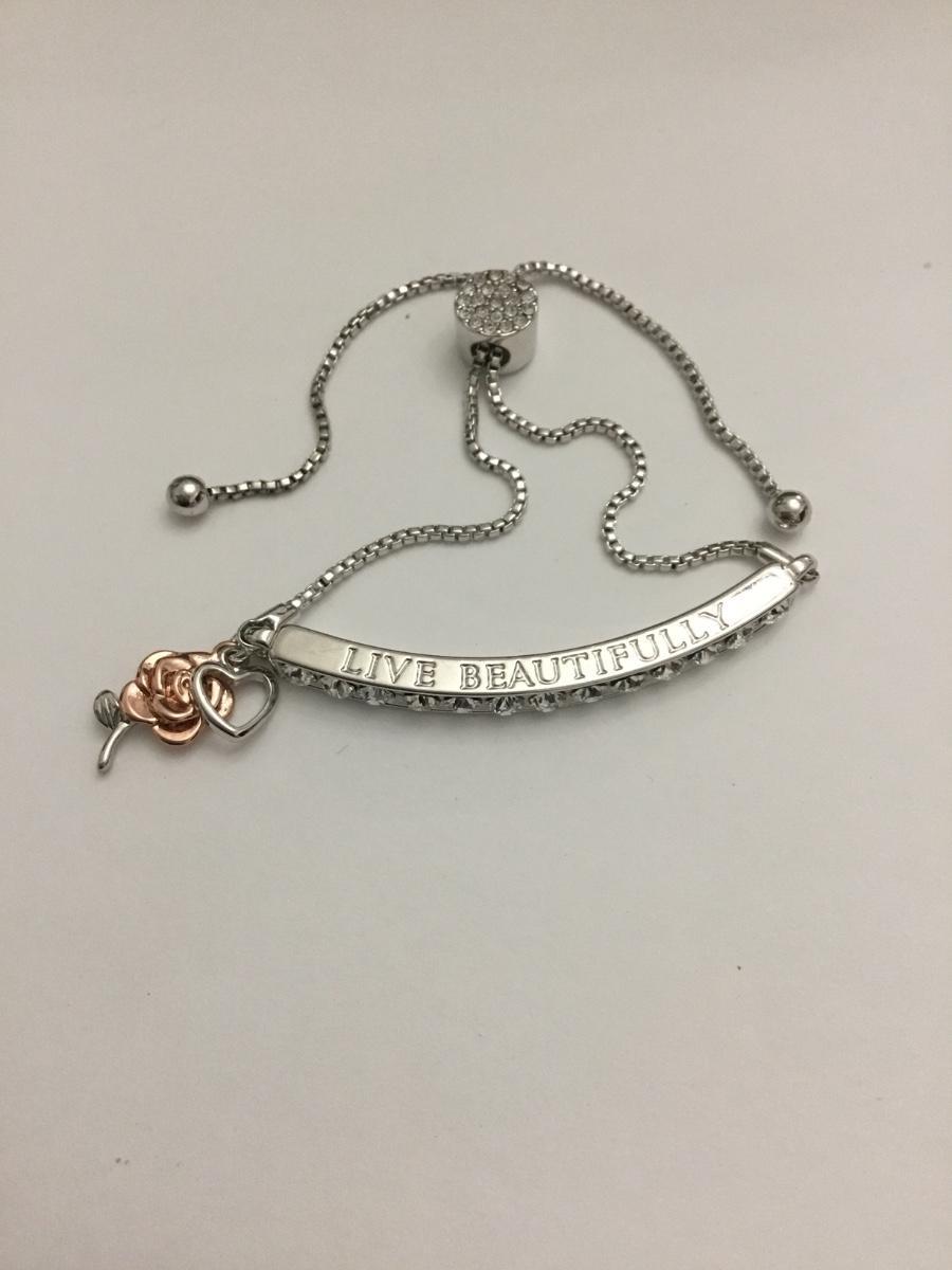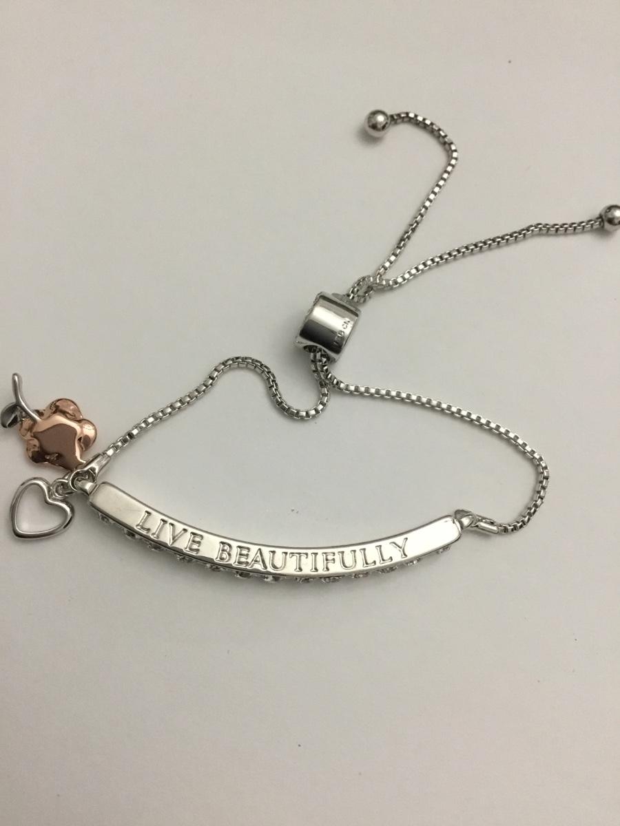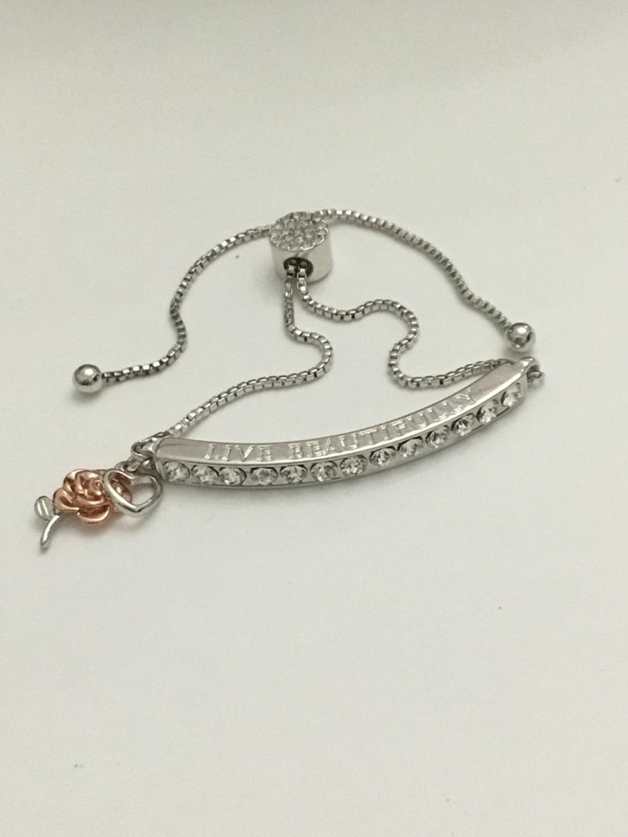 Beautiful, silver plated, rhinestone charm slider bracelet