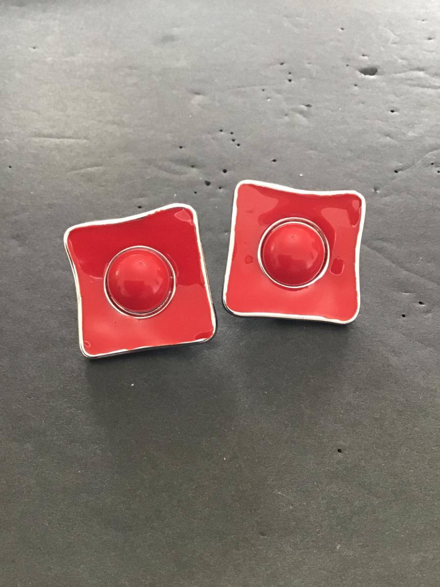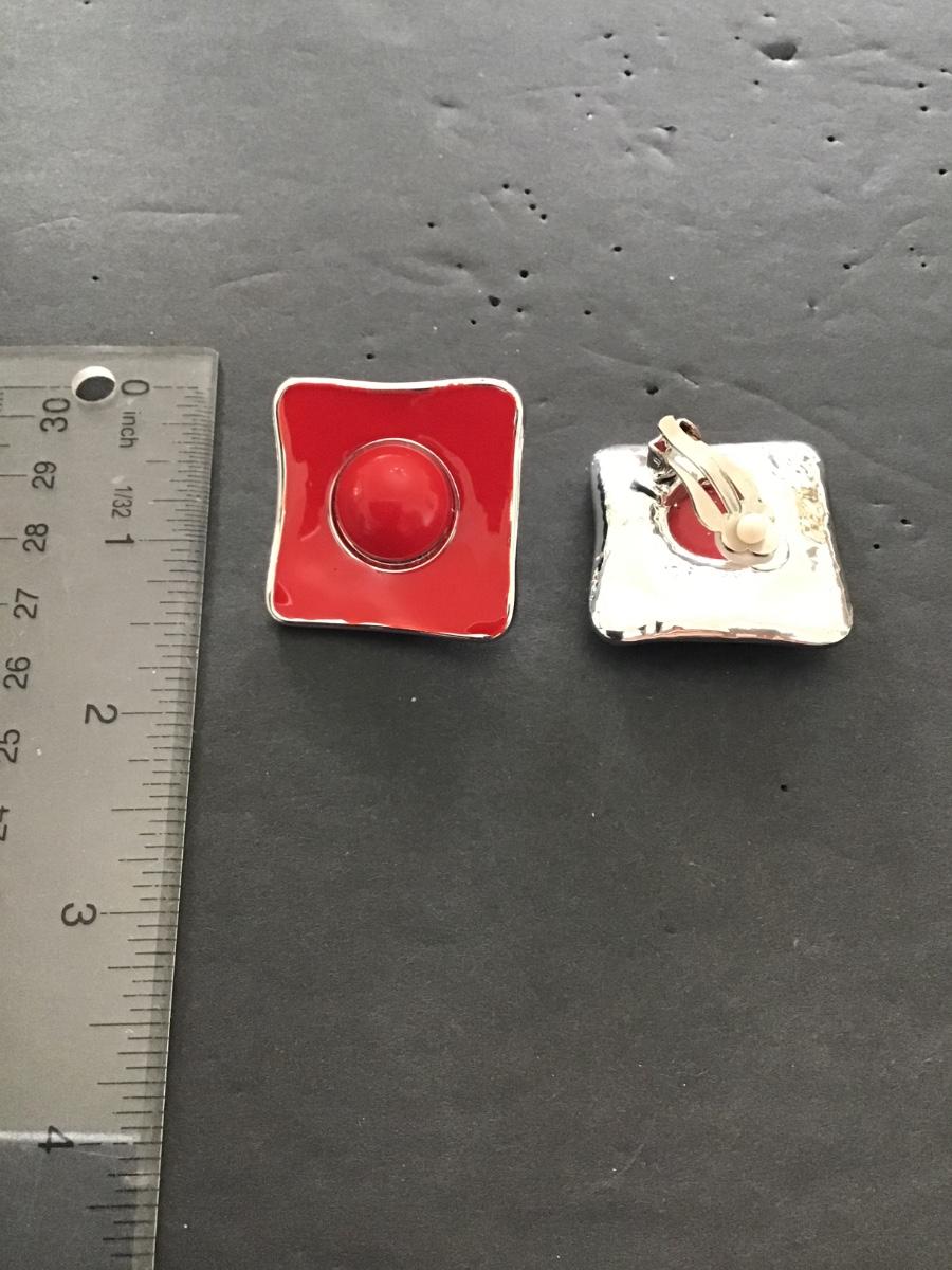 Beautiful, silver and red enamel fashion earrings. Please see attached photos.