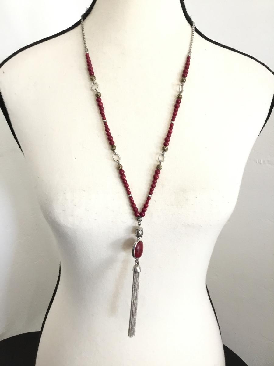 Beautiful Silver tone, Buckle, or Lucky Brand, stone tassel necklace