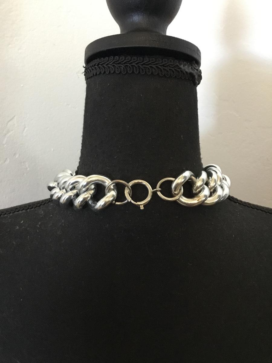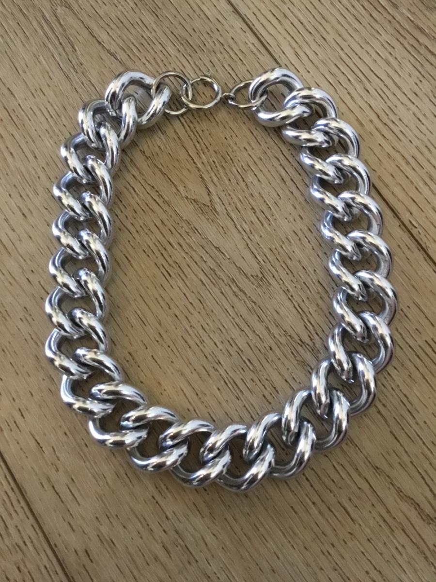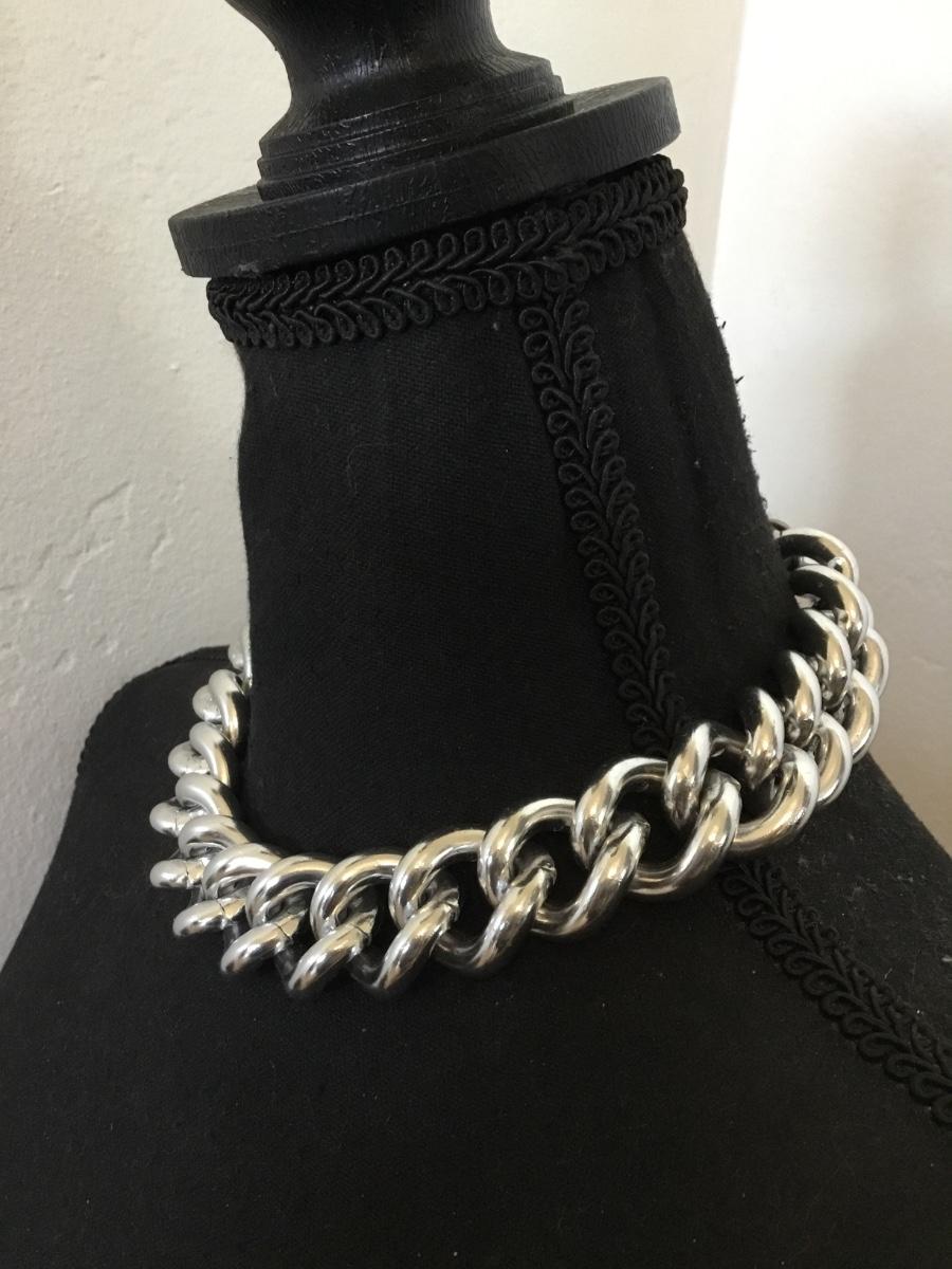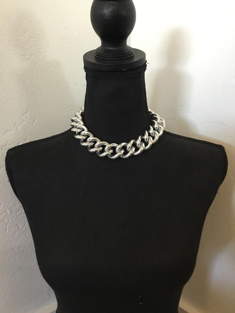 Beautiful Silver tone. Chunky metal, chain-link statement collar necklace.