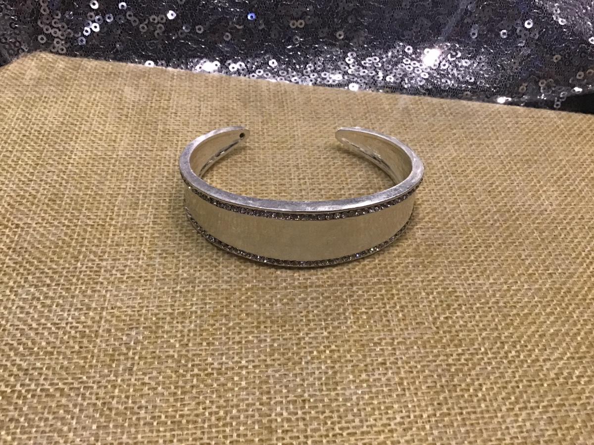 Beautiful Silver Tone Cuff Faux Diamonds