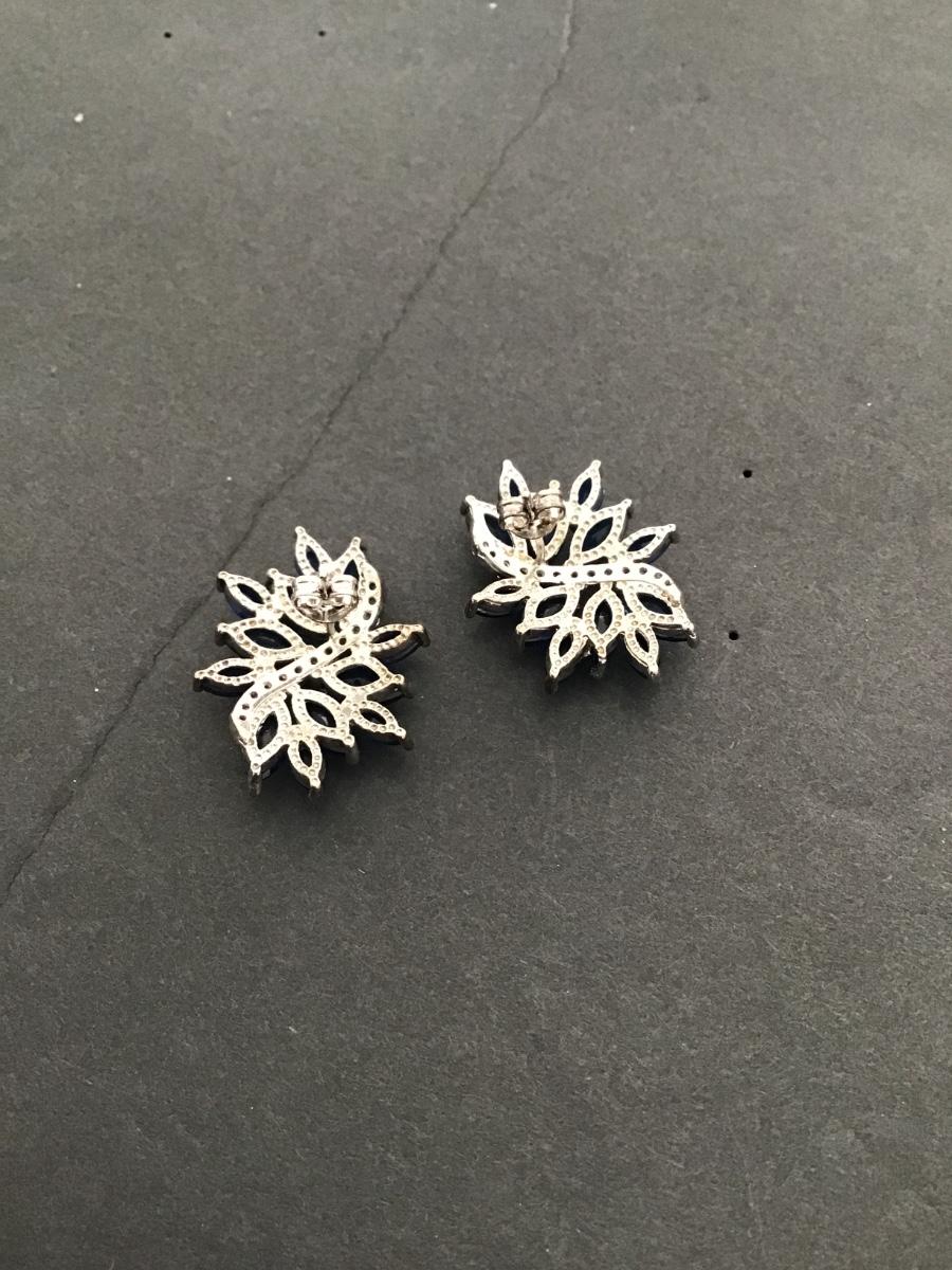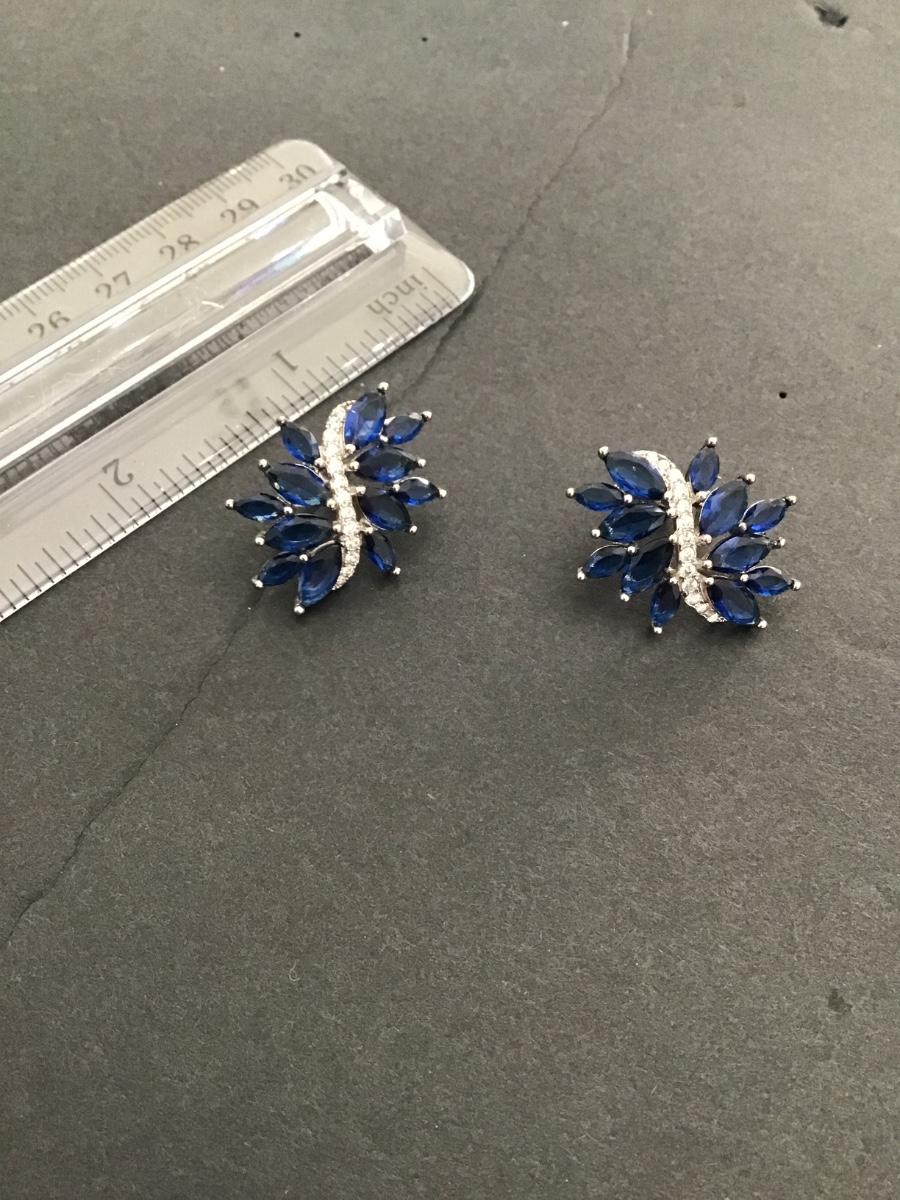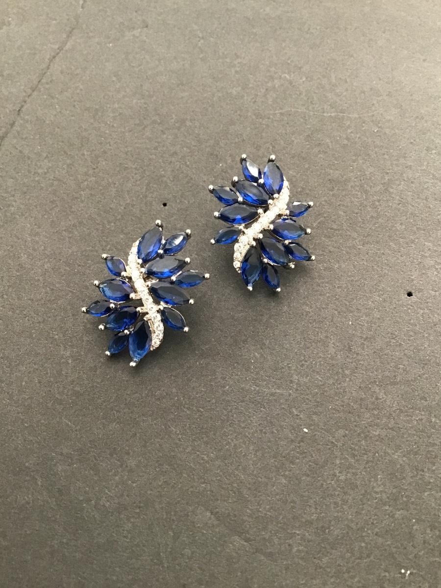 Beautiful silver tone earrings with blue and clear rhinestones. Please see attached photos.