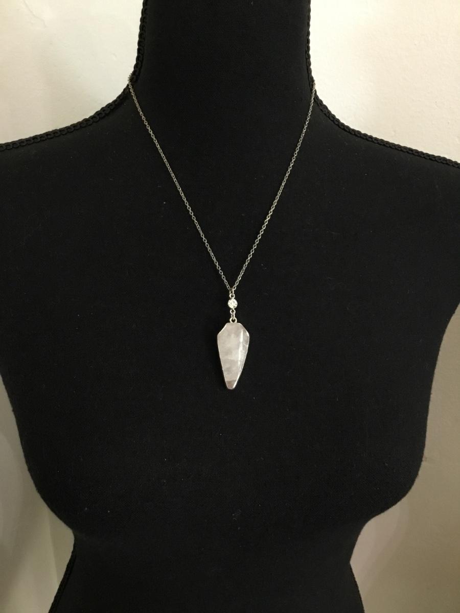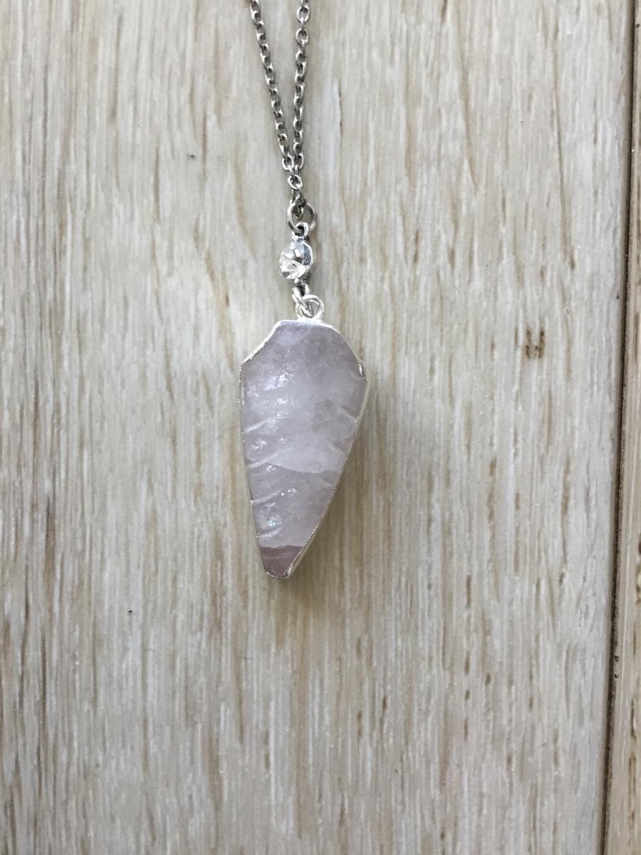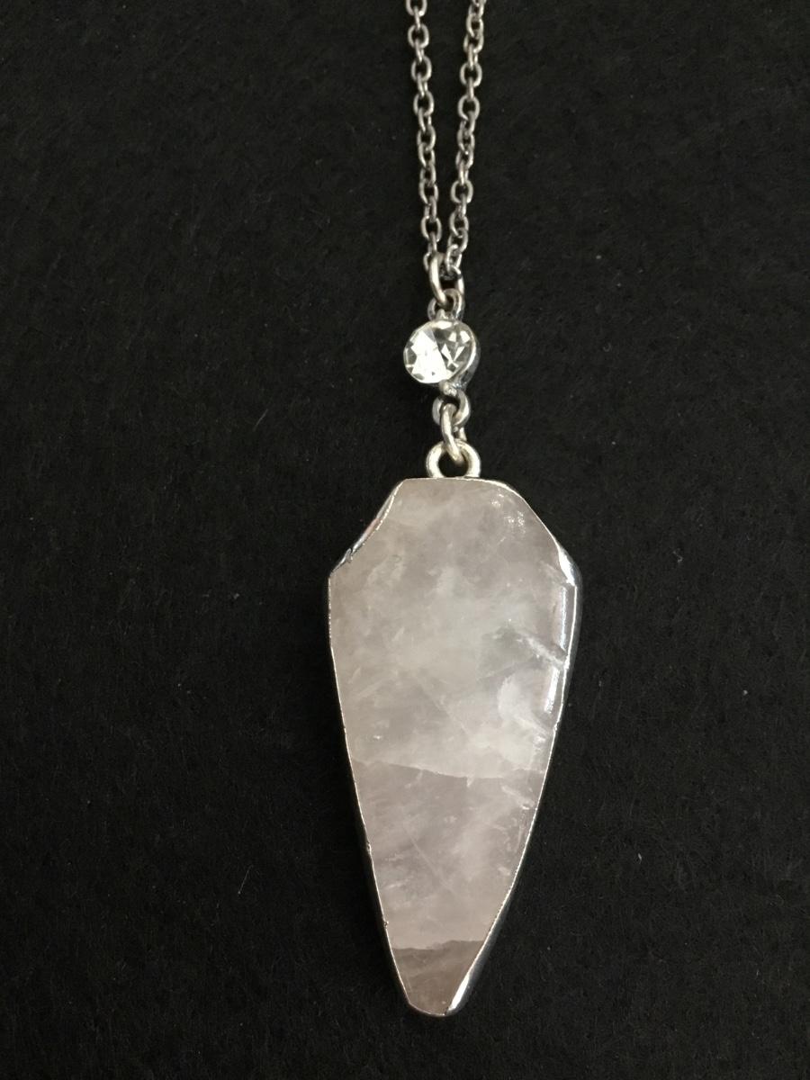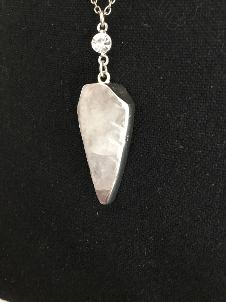 Beautiful Silver tone milky quartz, crystal pendant, healing stone with Silver toned chain