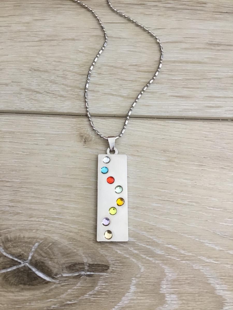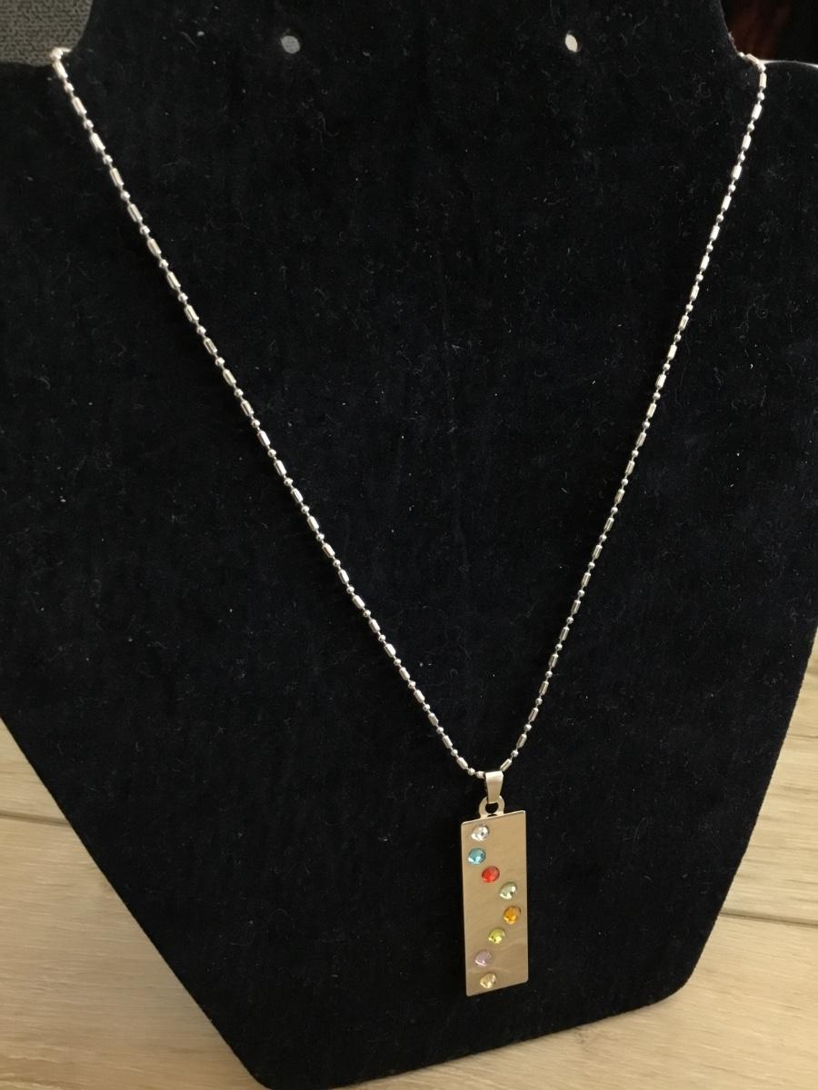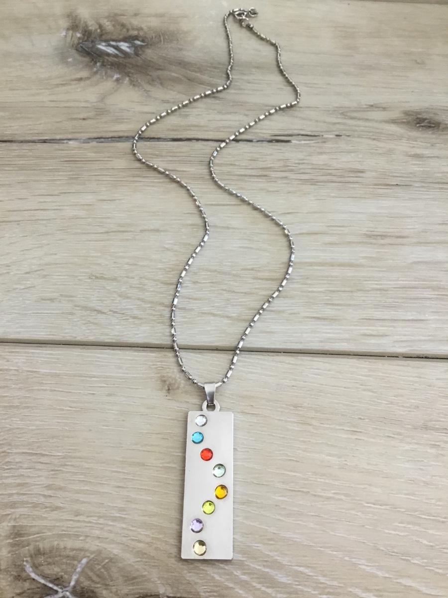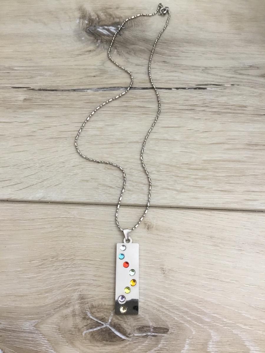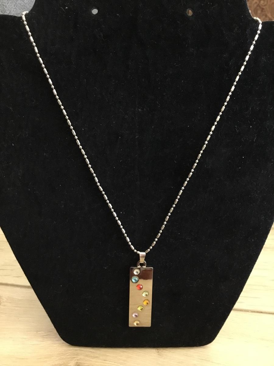 Beautiful silver tone Multi colored rhinestone square pendant, silver tone, chain necklace