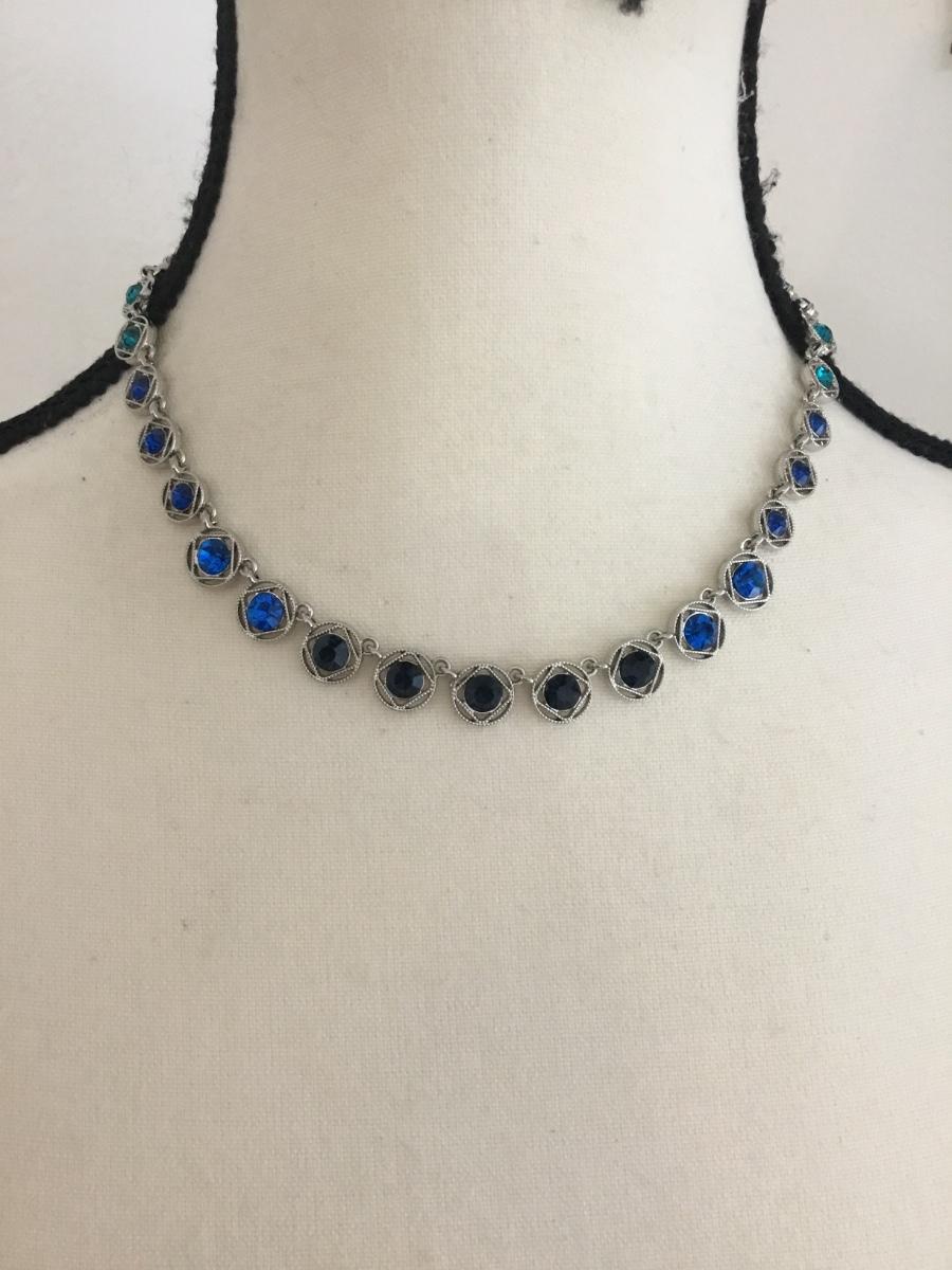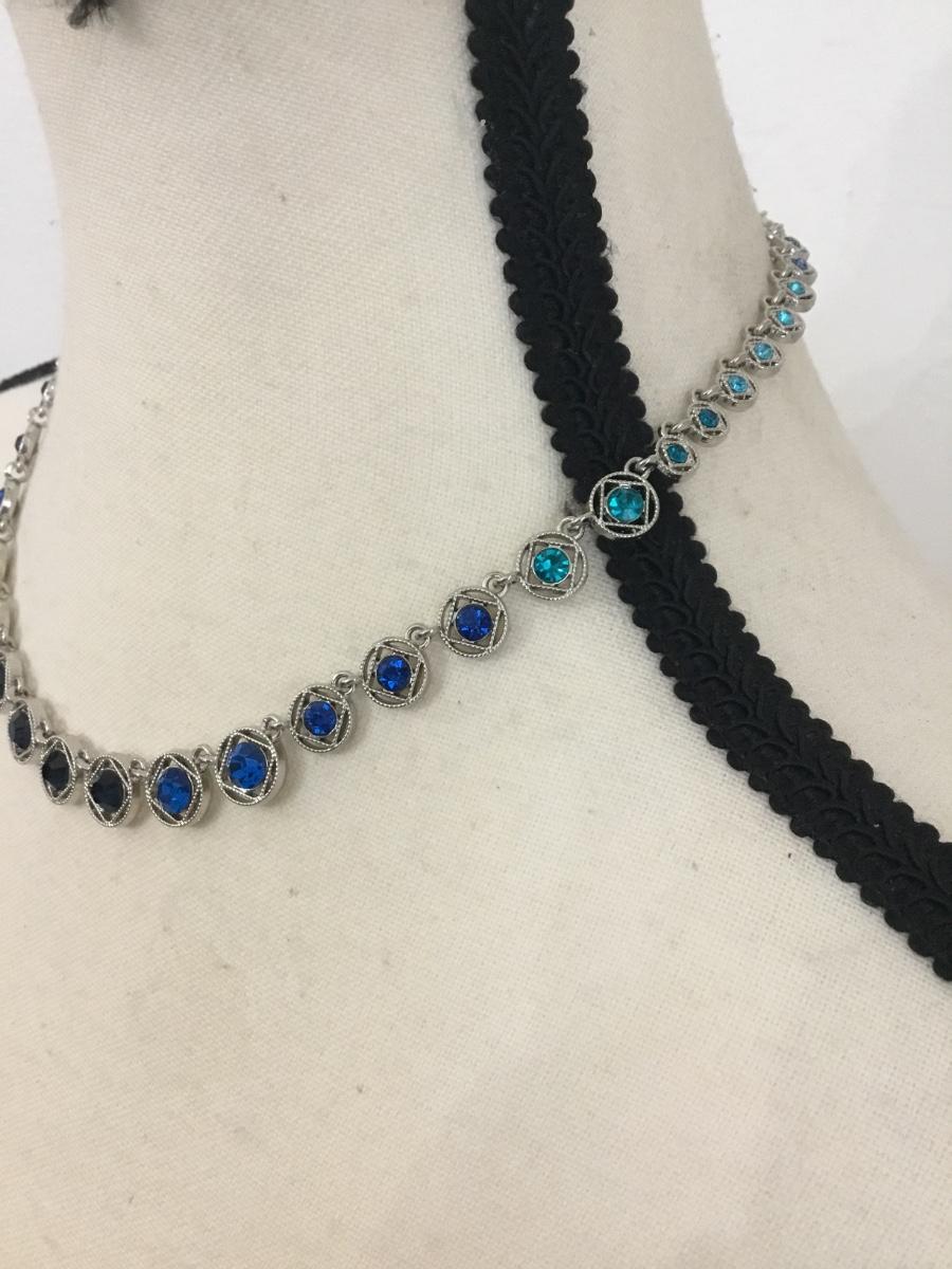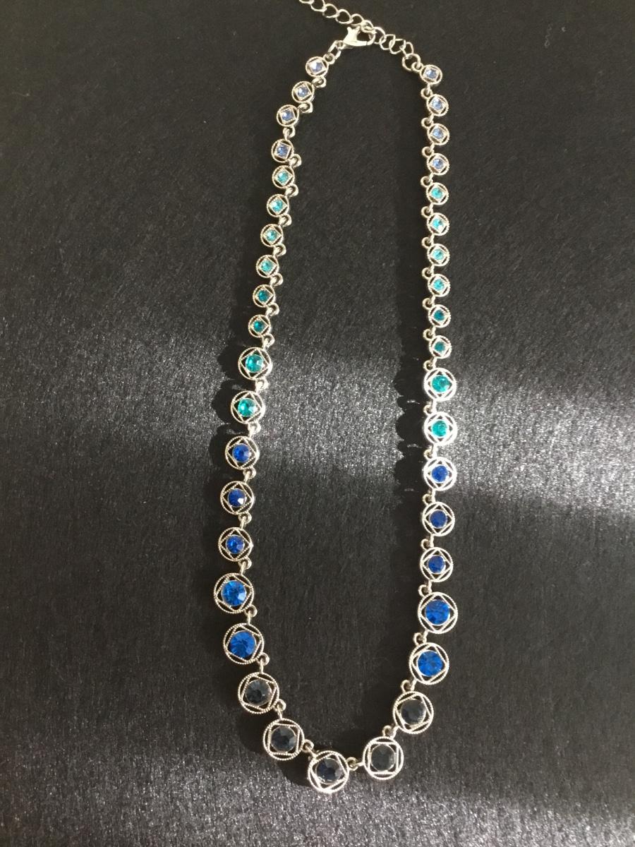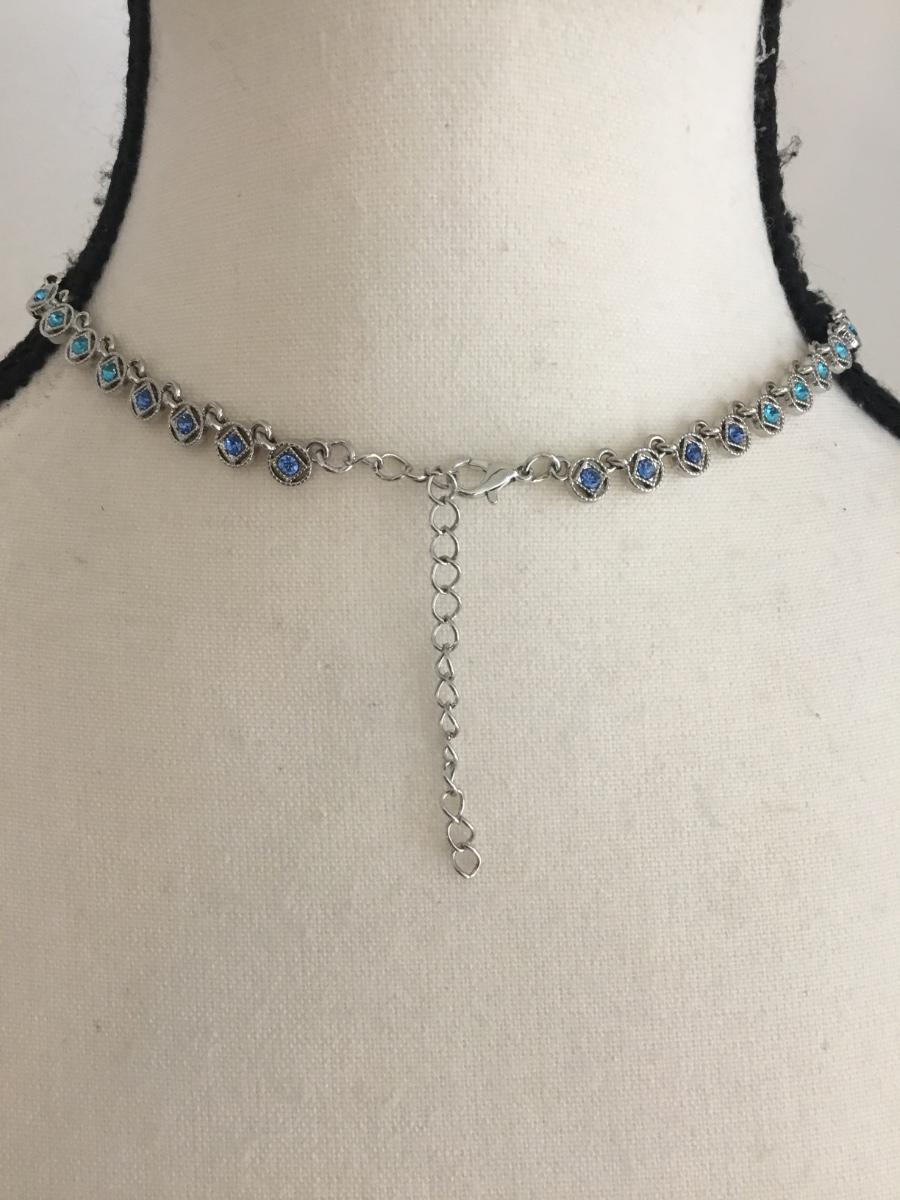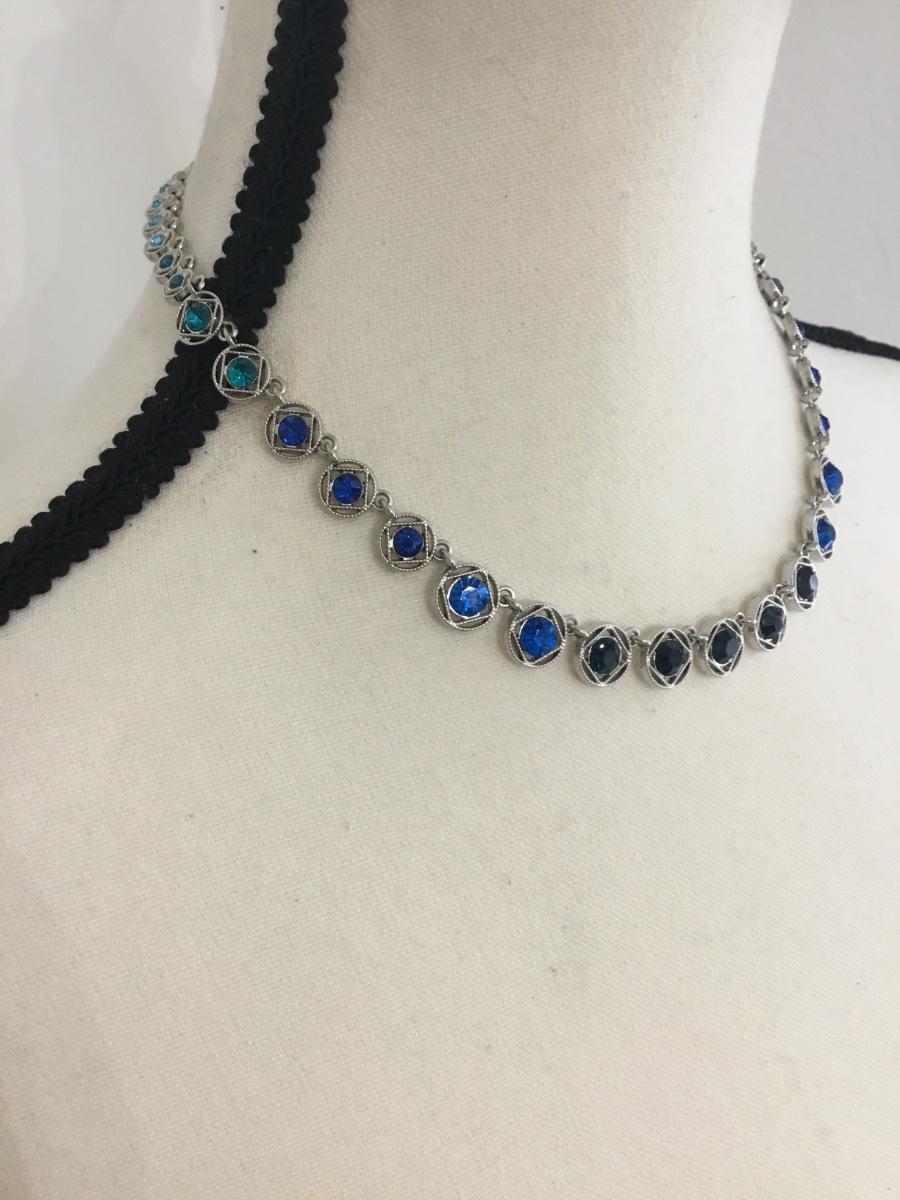 Beautiful silver tone ombré blues statement choker necklace