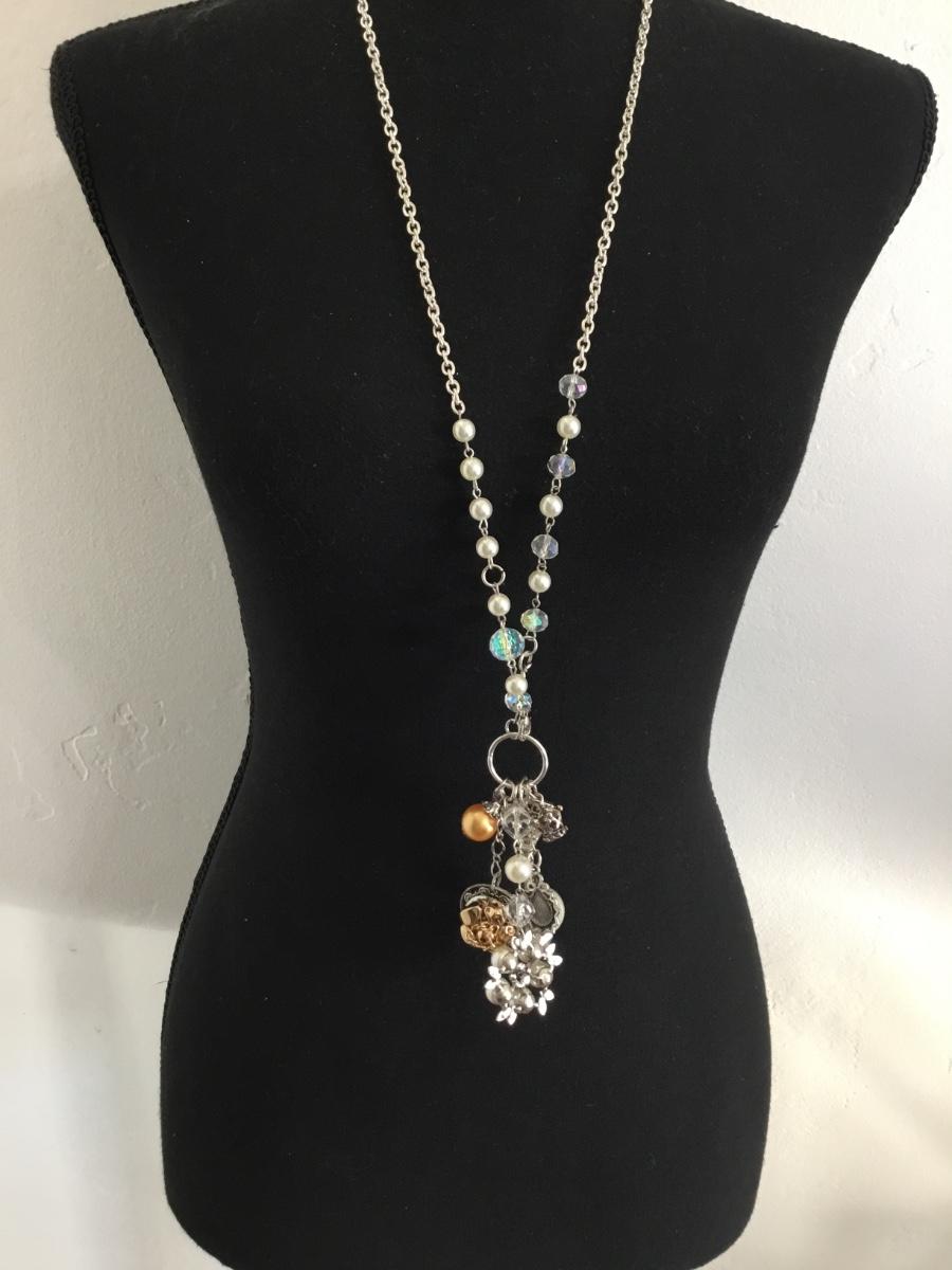 Beautiful Silver tone plunder necklace with multiple charm, tassels statement, necklace