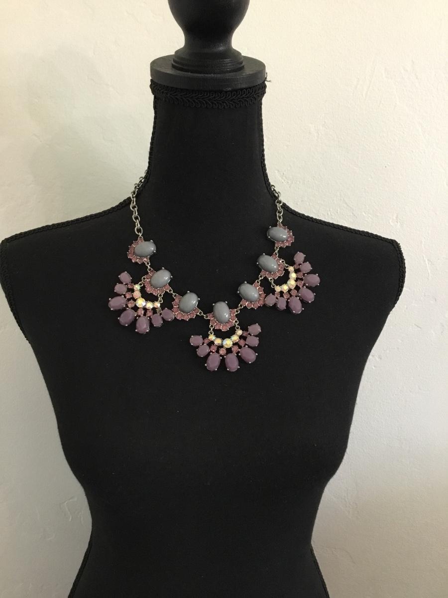 Beautiful Silver tone, purple rhinestone, large statement, necklace