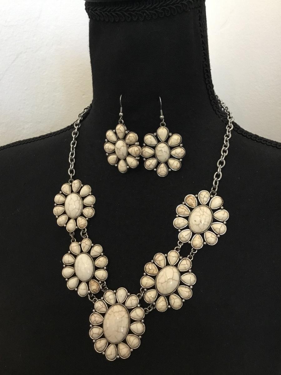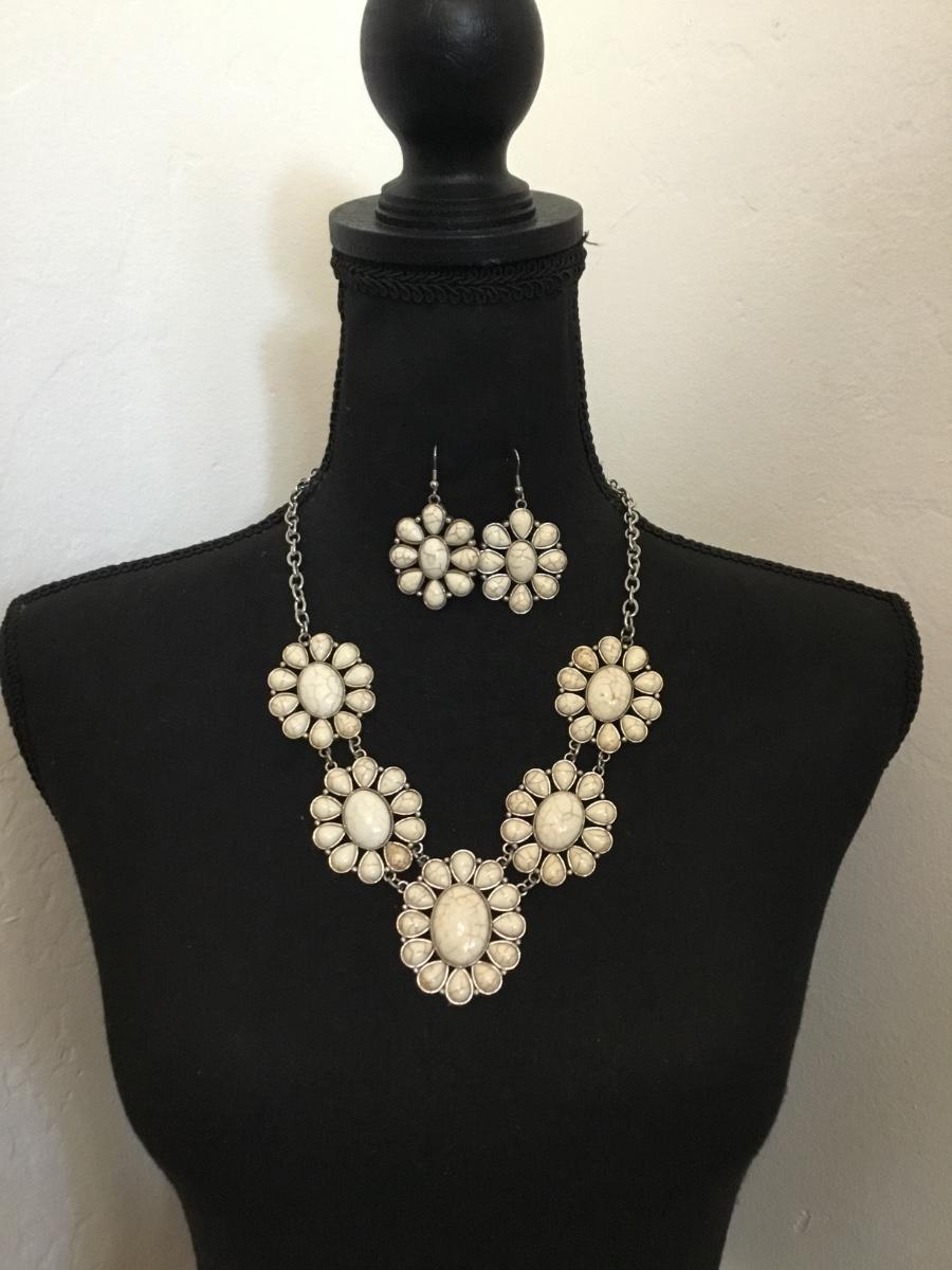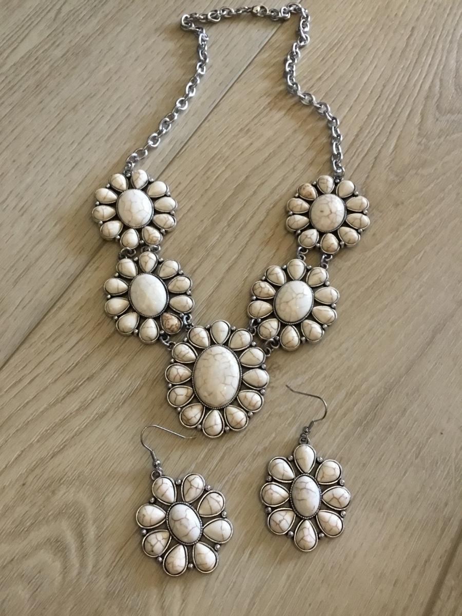 Beautiful Silver tone, stone bead statement, necklace, and matching earrings set