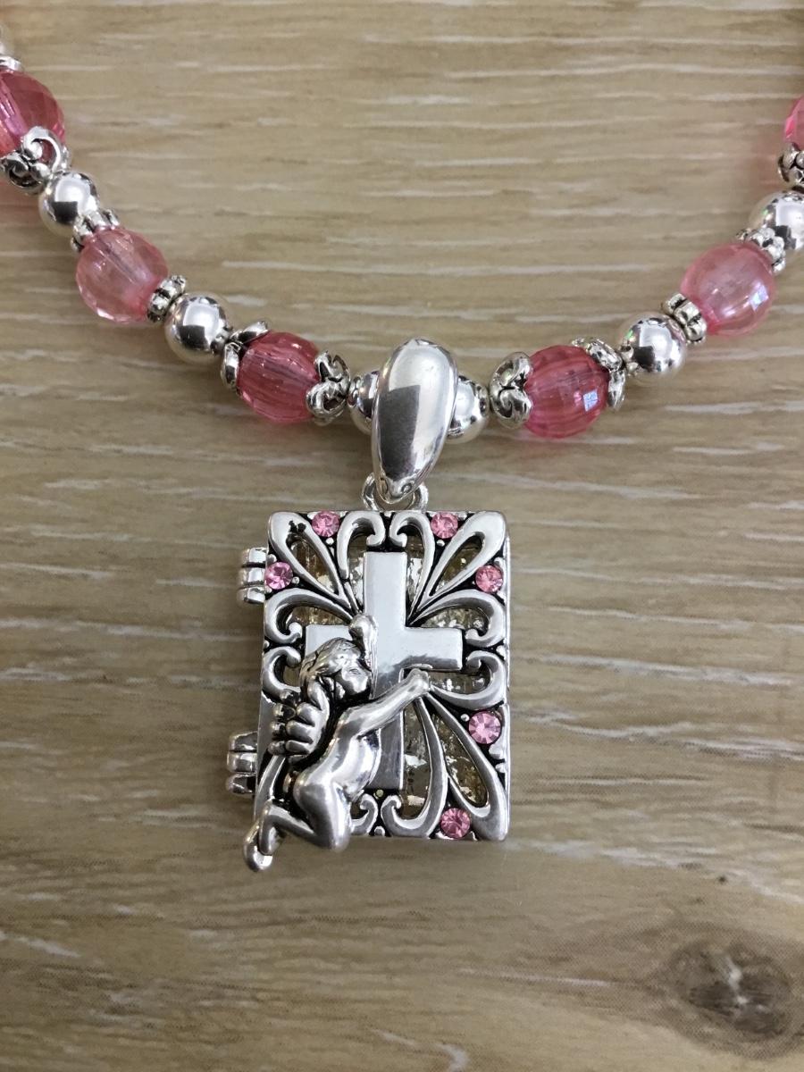 Beautiful silver toned angel prayer necklace
