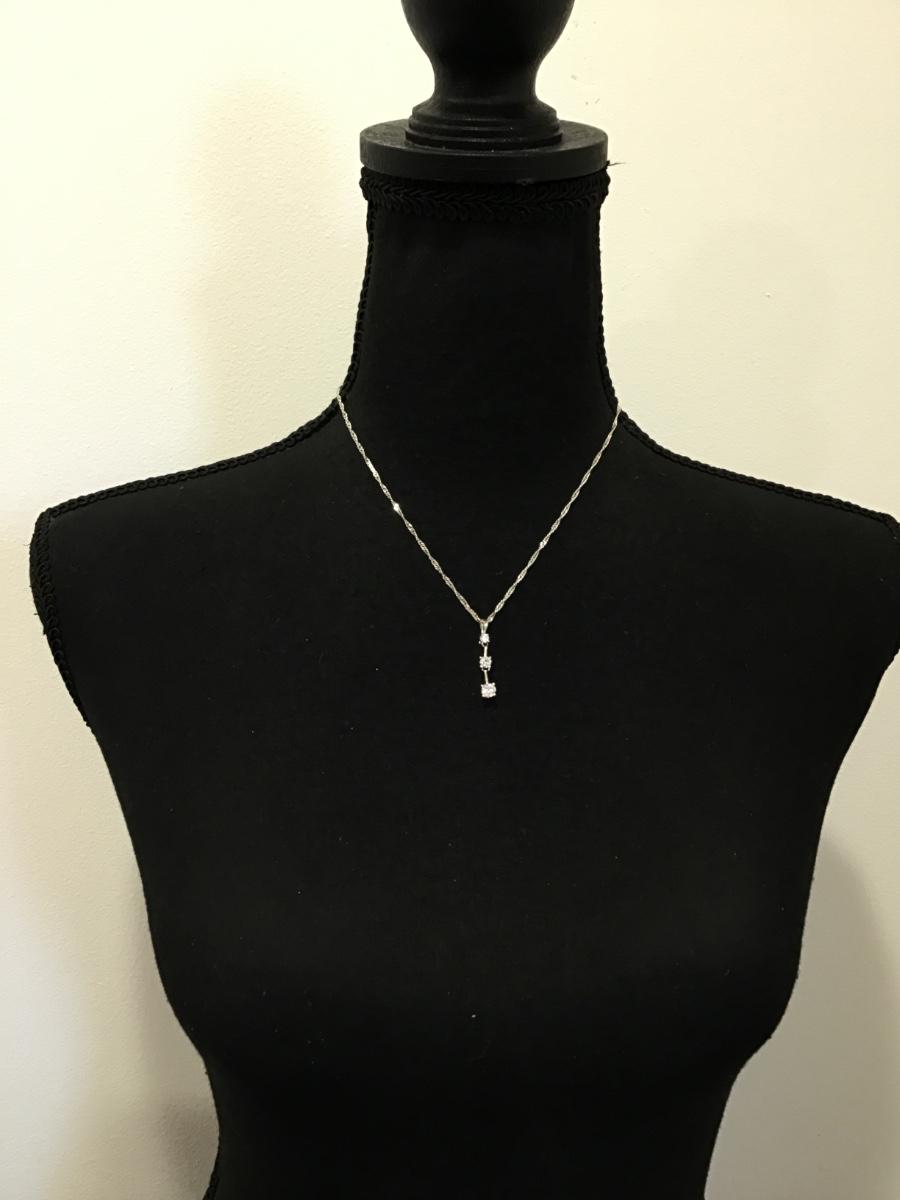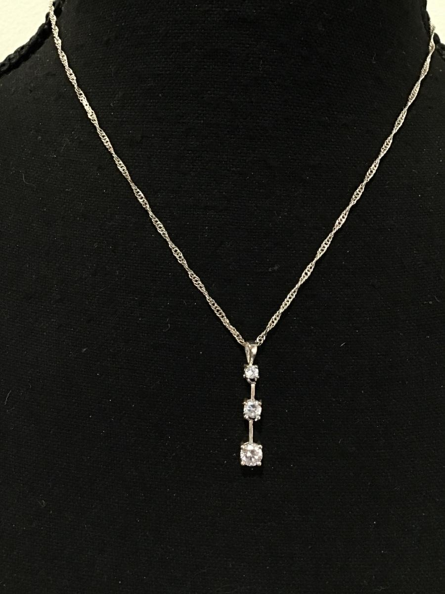 Beautiful, silver toned, crystal rhinestone, drop dainty necklace