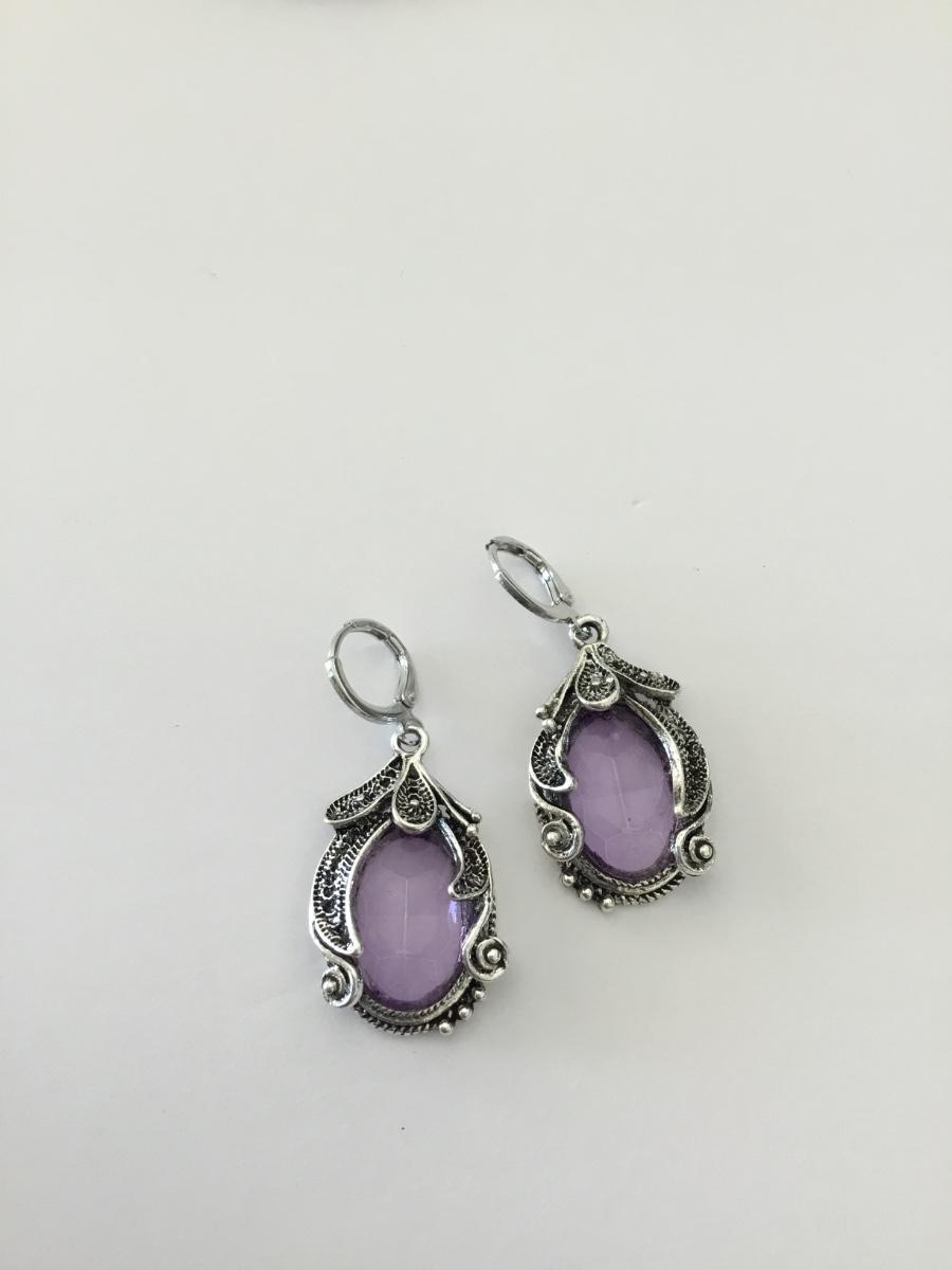 Beautiful, silver toned, faceted, purple glass dangle earrings