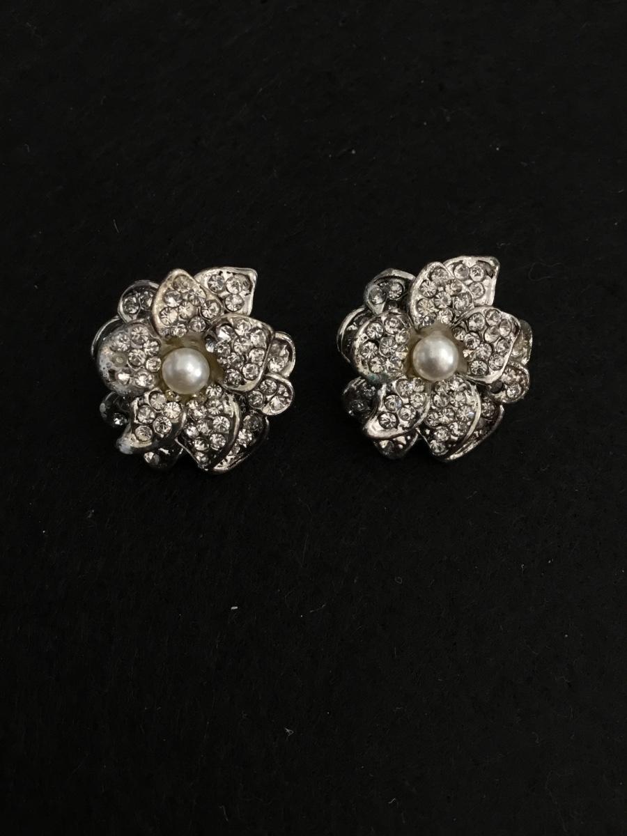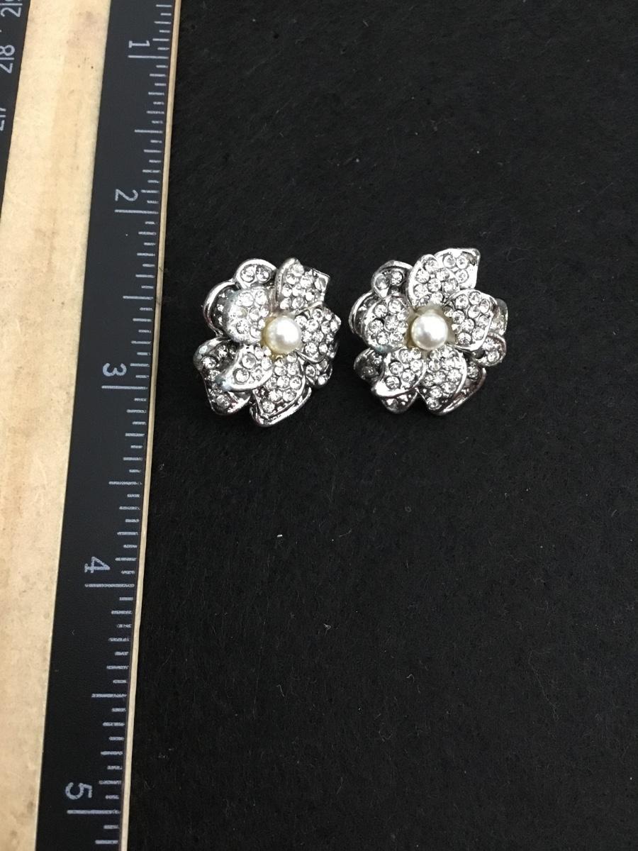Beautiful, silver toned flower, encrusted, rhinestone, stud statement earrings