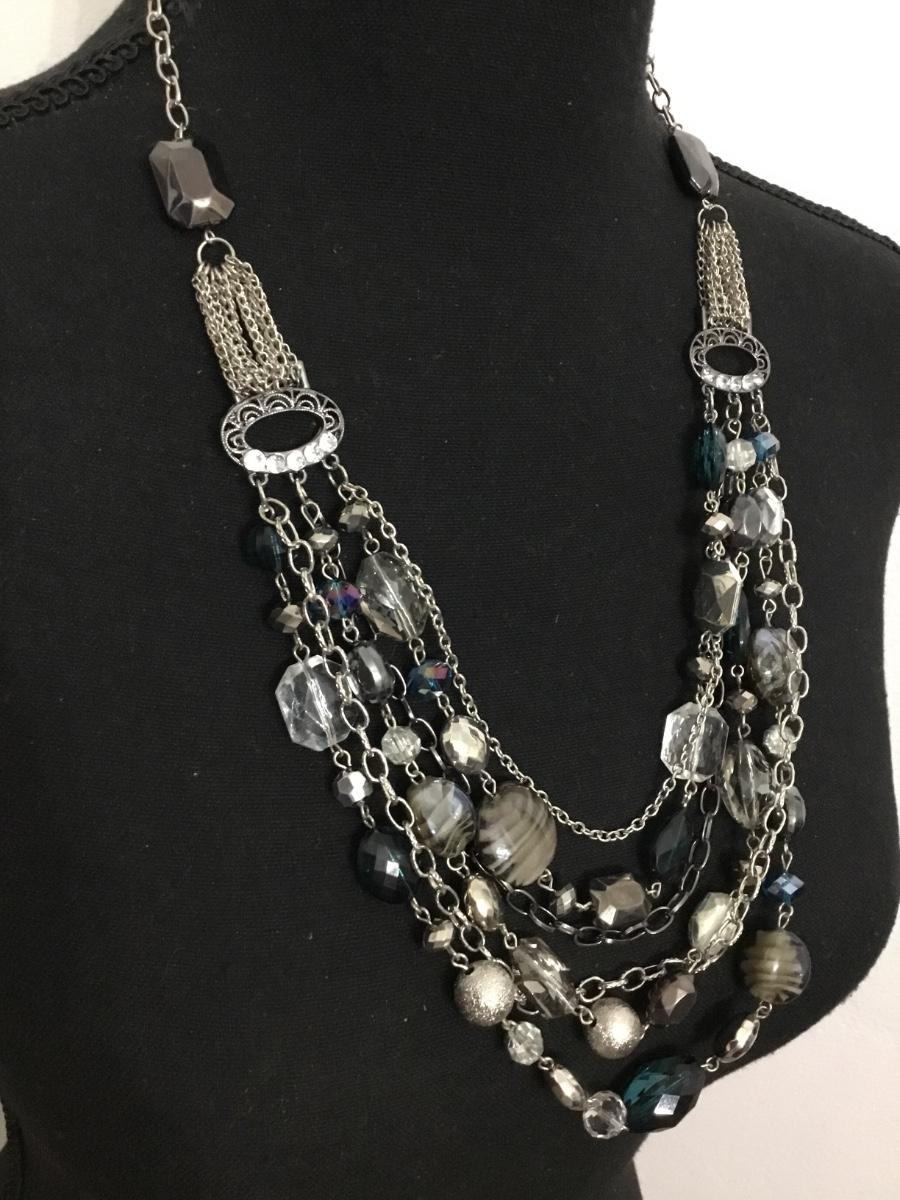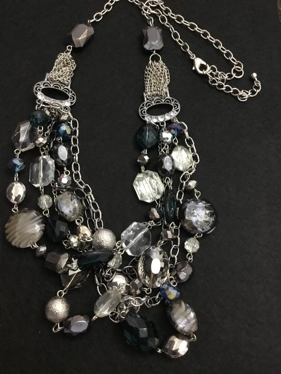 Beautiful, silver toned, multi, layered crystal glass, bead statement, necklace
