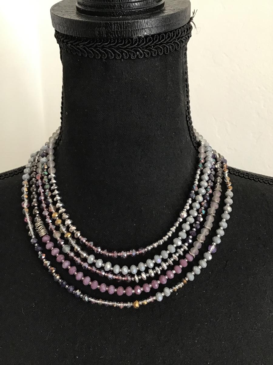 Beautiful, silver, toned, multi strand, faceted, crystal bead, necklace, signed