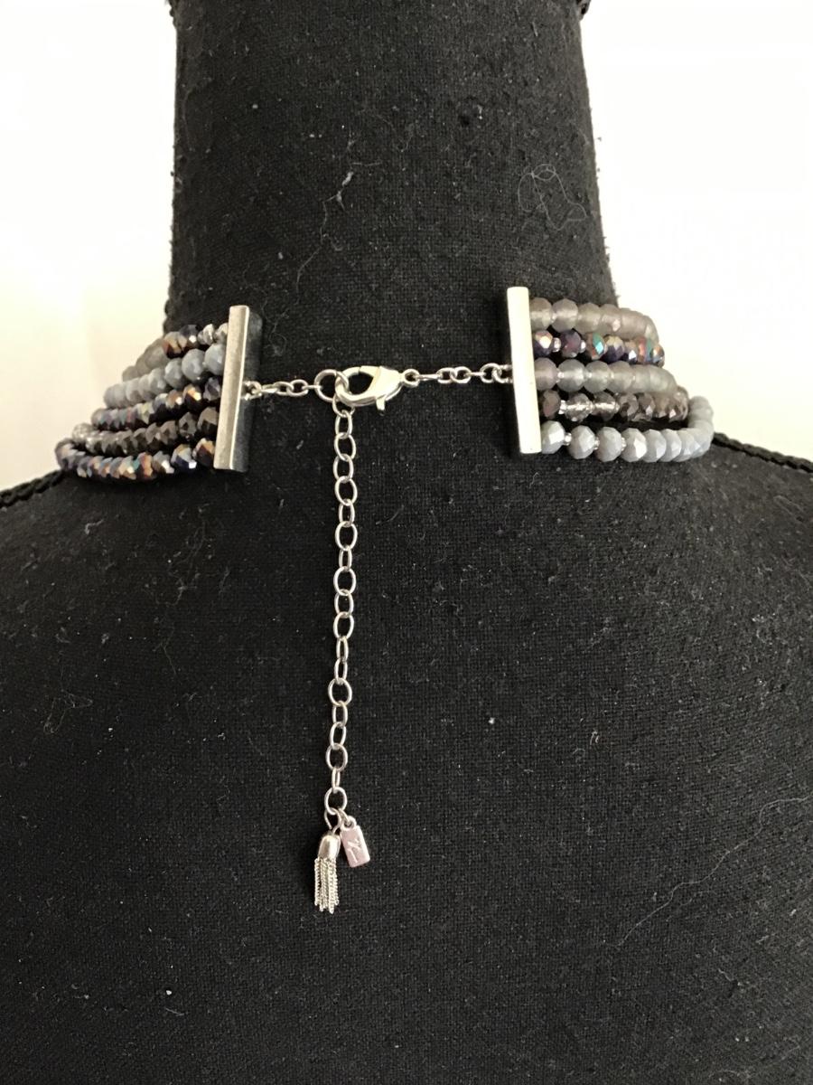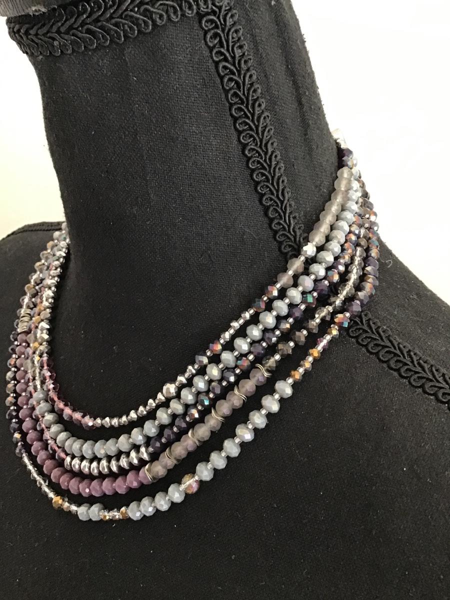 Beautiful, silver, toned, multi strand, faceted, crystal bead, necklace, signed