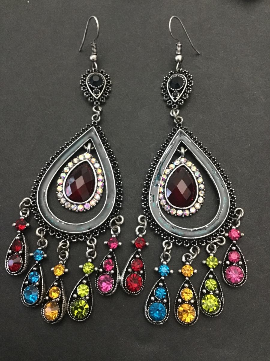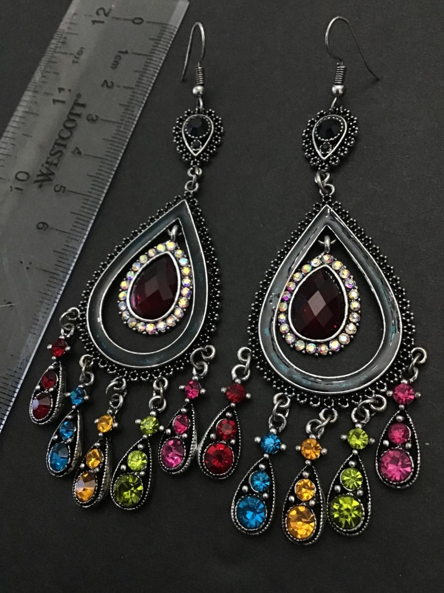 Beautiful, silver toned, multicolored, rhinestone, crystal , , statement earrings