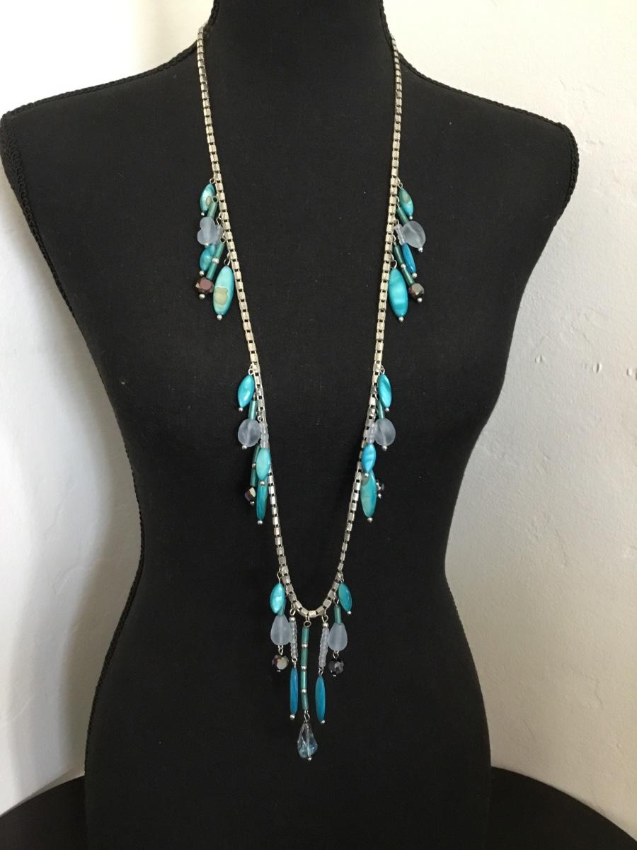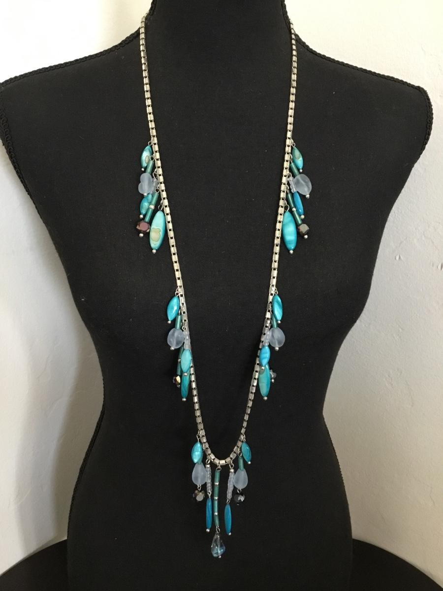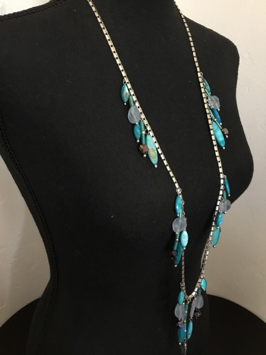Beautiful, silver toned, Ocean blue, abalone shell, frosted Seaglass statement, necklace