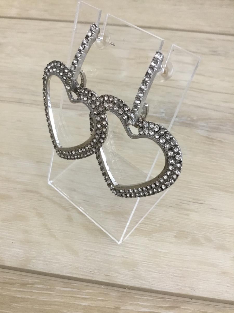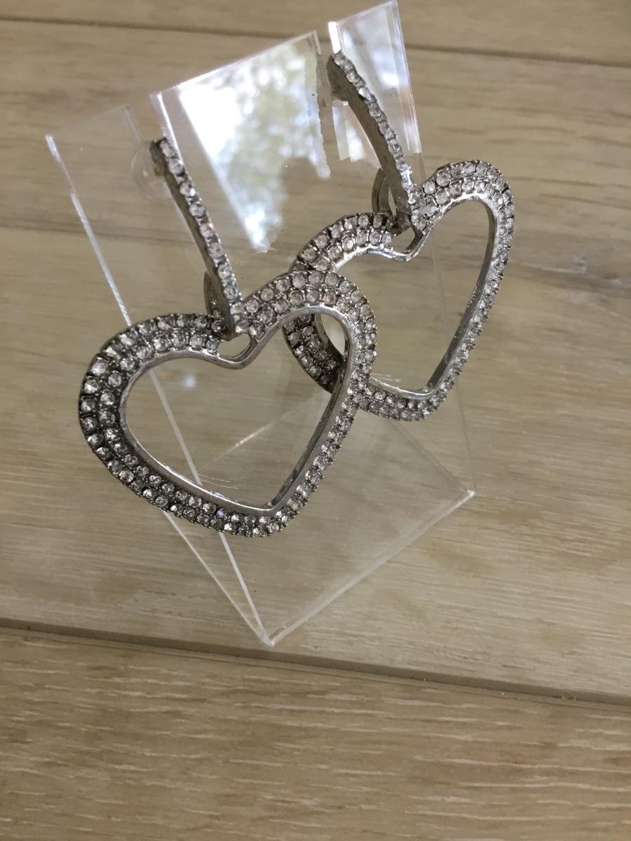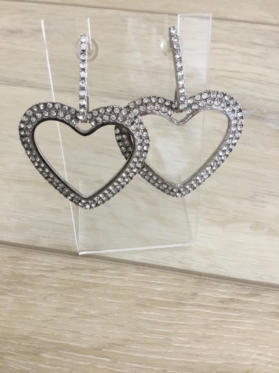 Beautiful silver toned, rhinestone, covered heart statement, earrings
