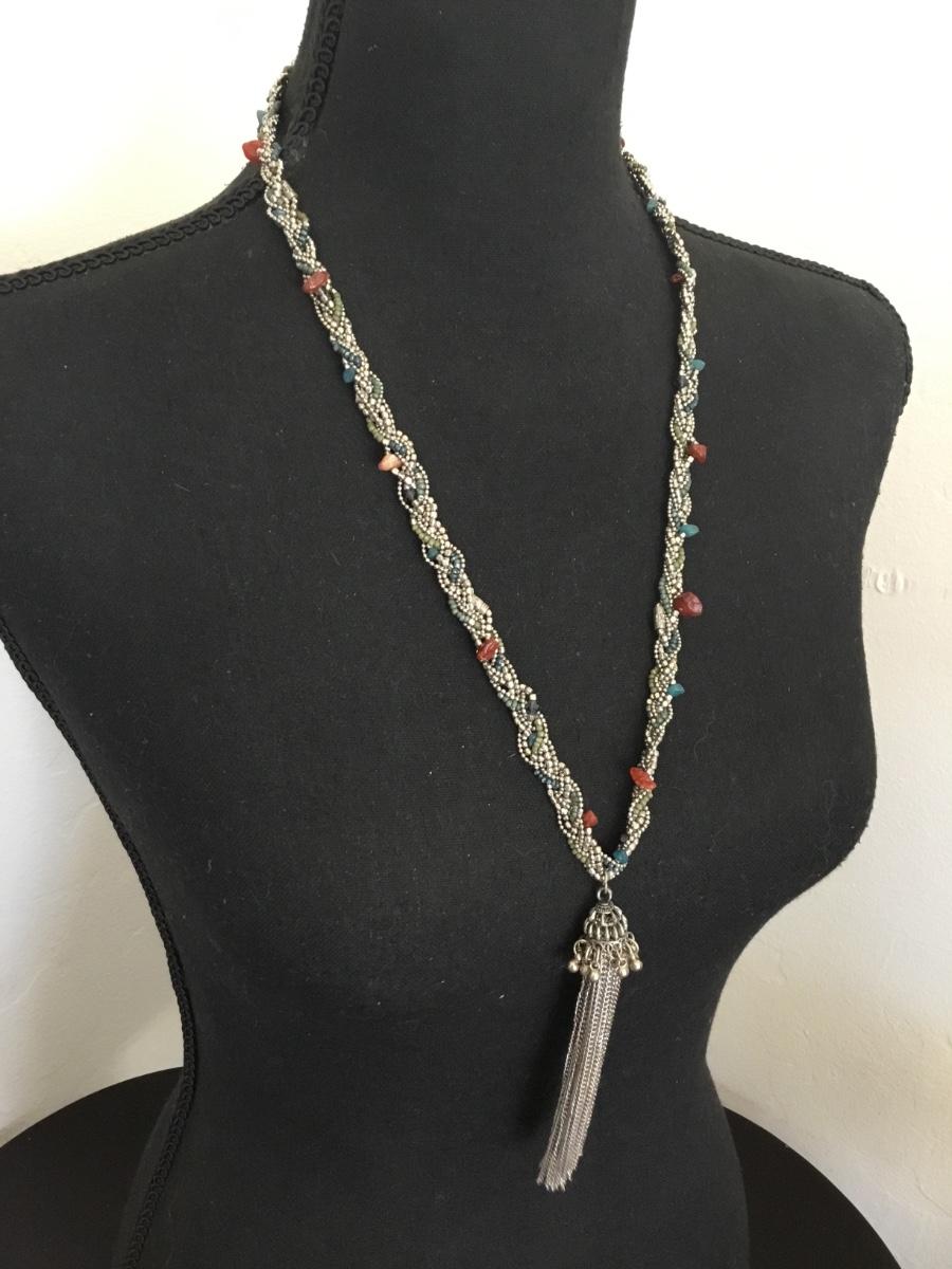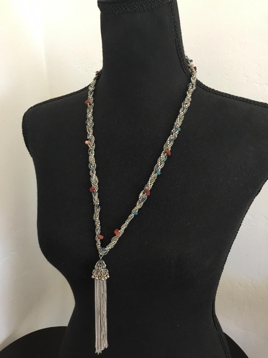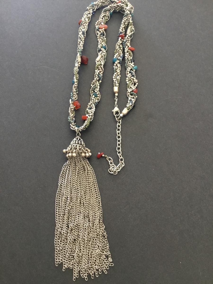 Beautiful, silver toned, tassel statement, necklace