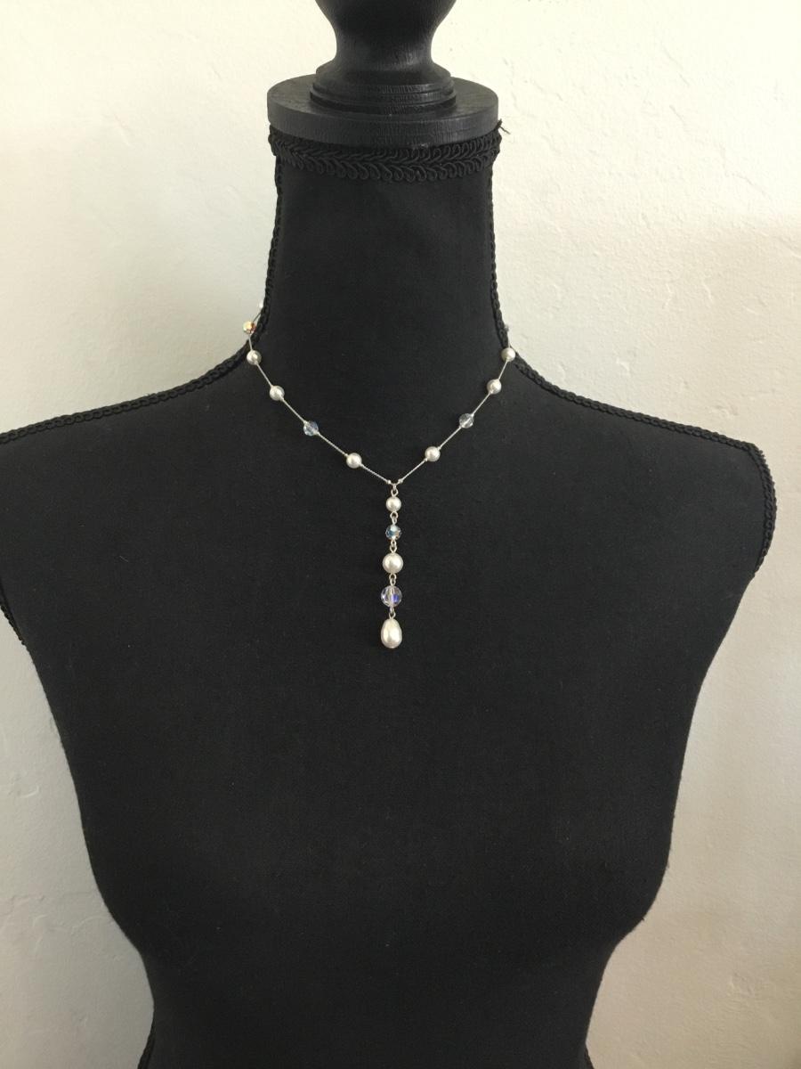 Beautiful Silver-tone, Crystal faux pearl Y necklace