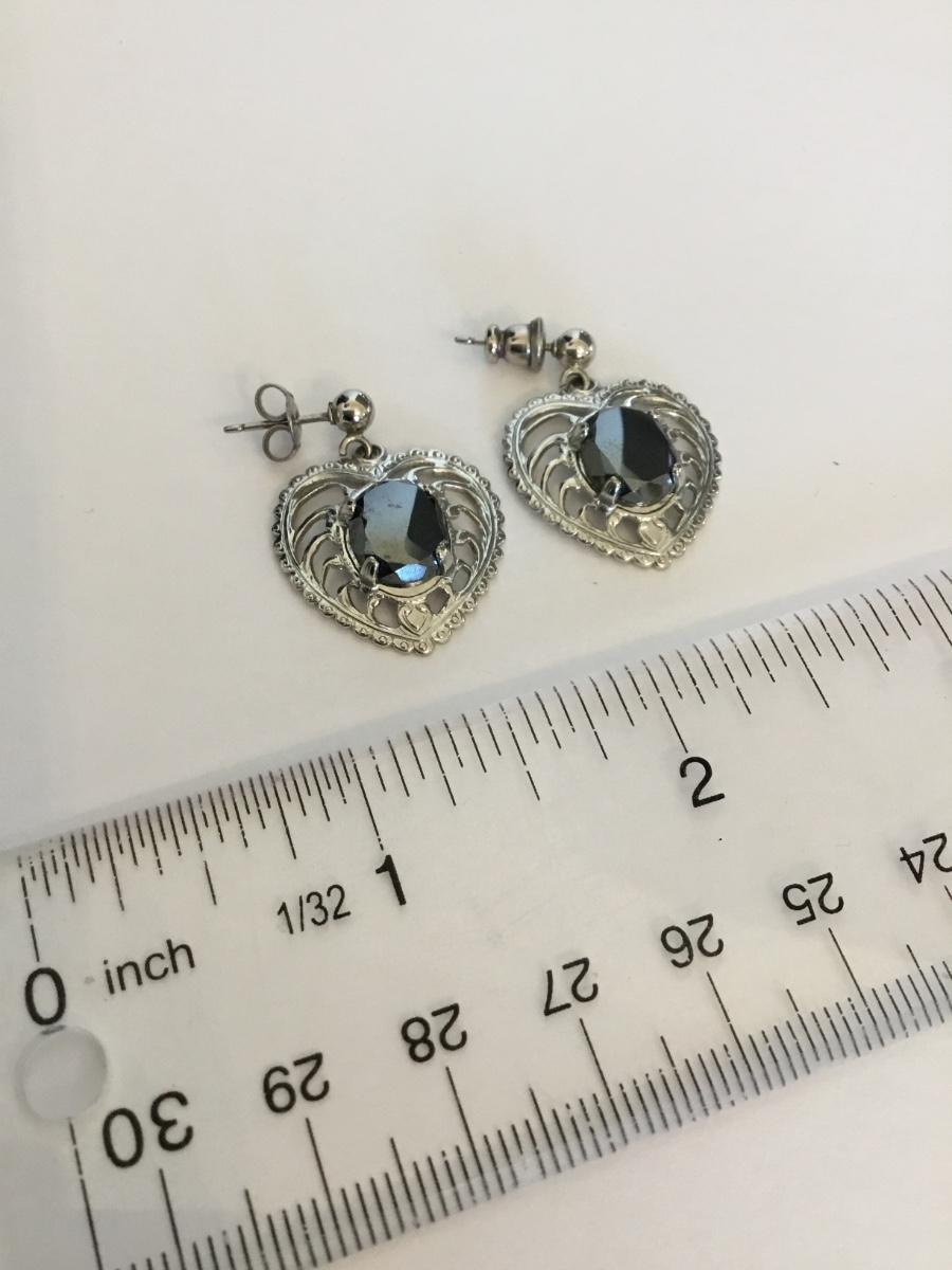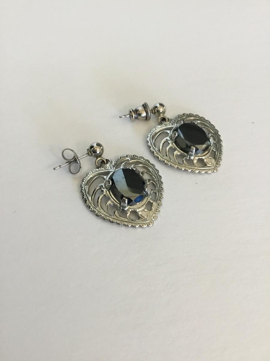 Beautiful Silver-tone filagree heart & Black onyx Marcasite heart earrings