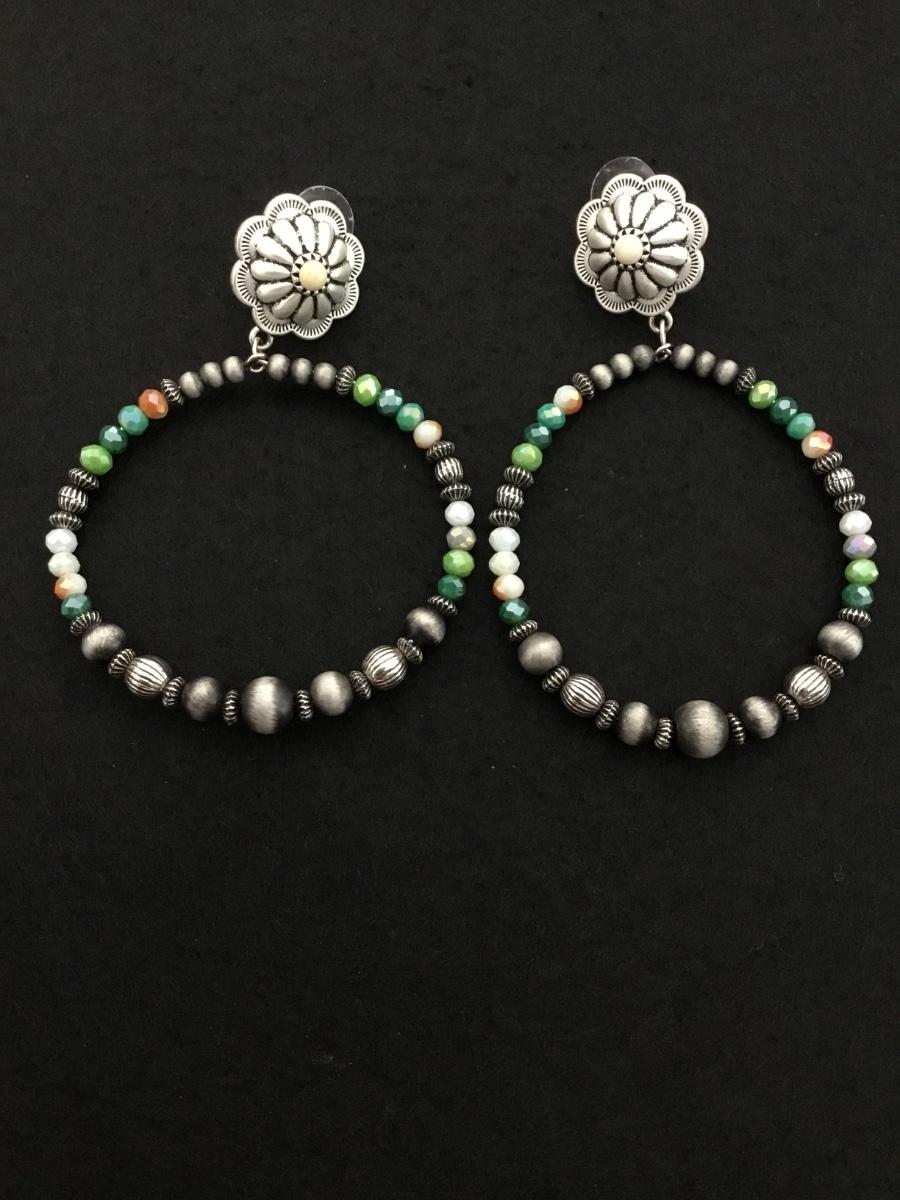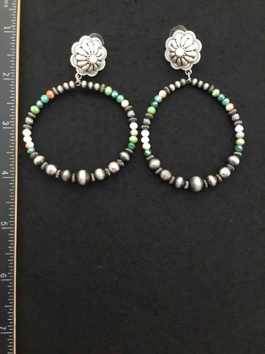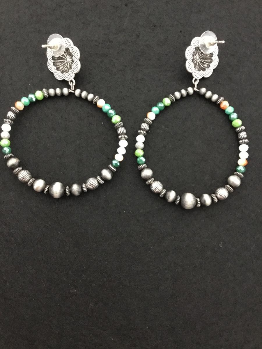 Beautiful Silver-tone, glass bead, hoop stud earings