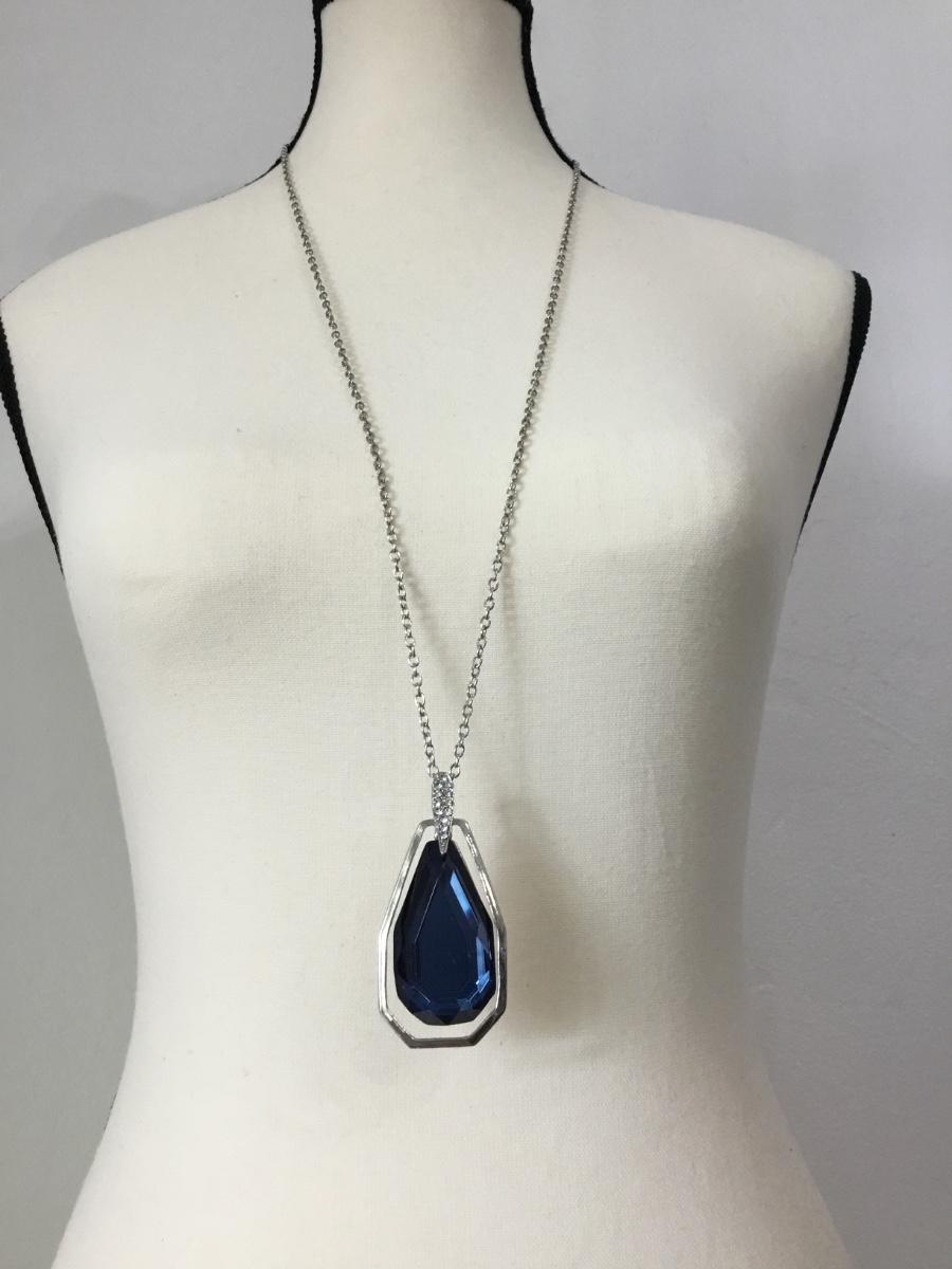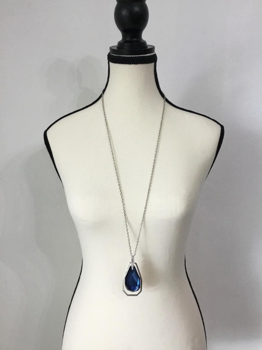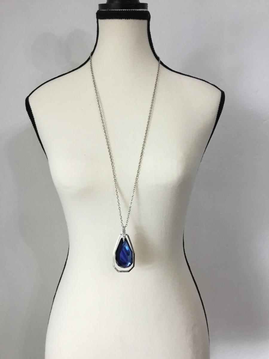 Beautiful Silver-tone necklace with beautiful Silver-tone rhinestone sapphire tone pendants