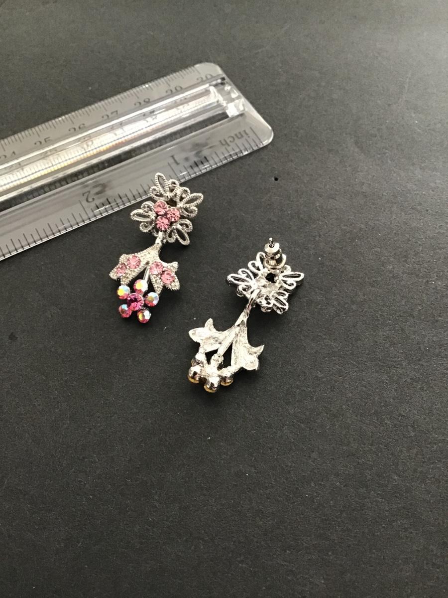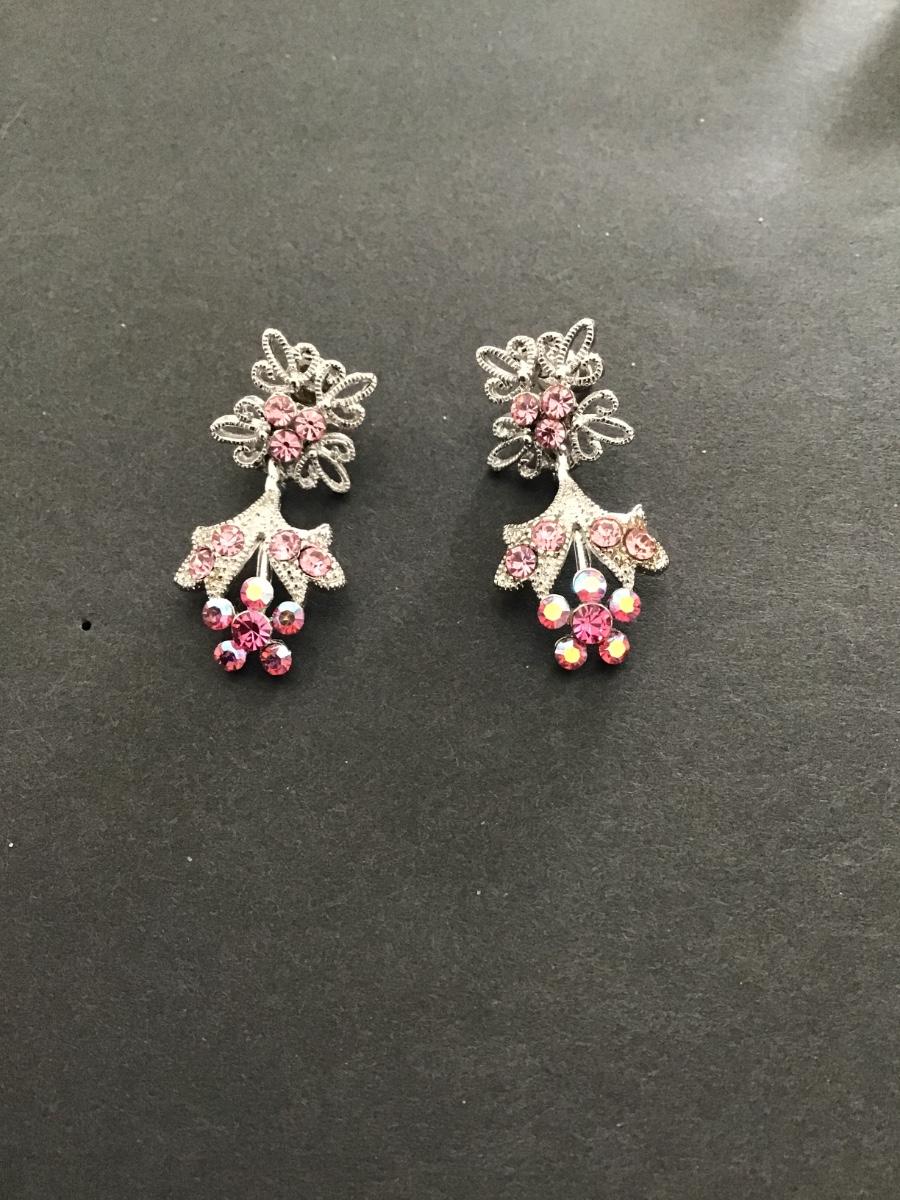 Beautiful silver tone with pink rhinestone earrings. Please see attached photos.