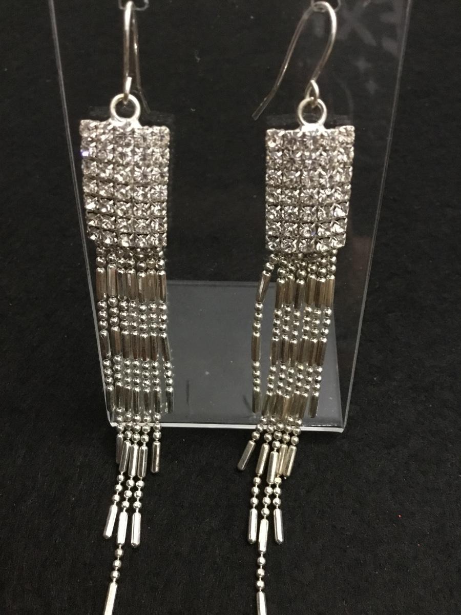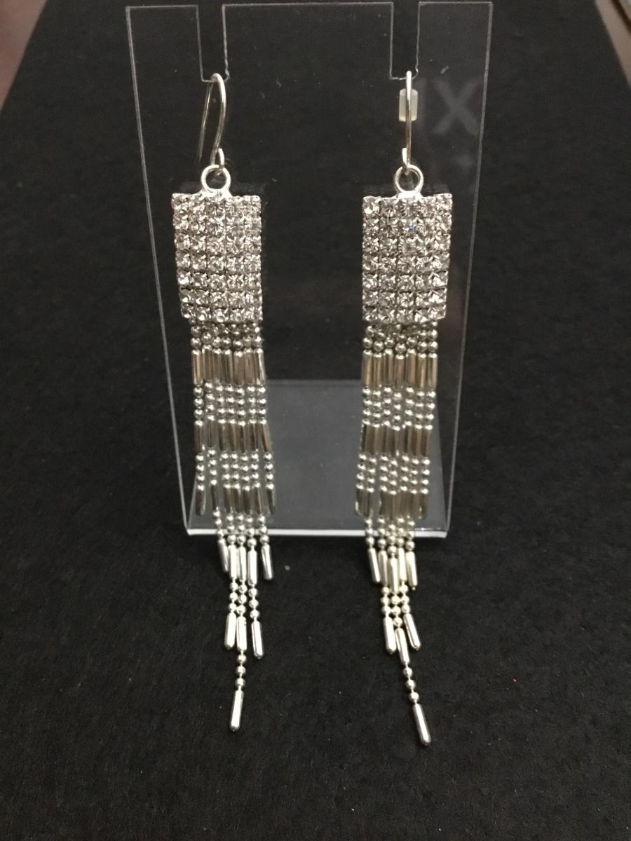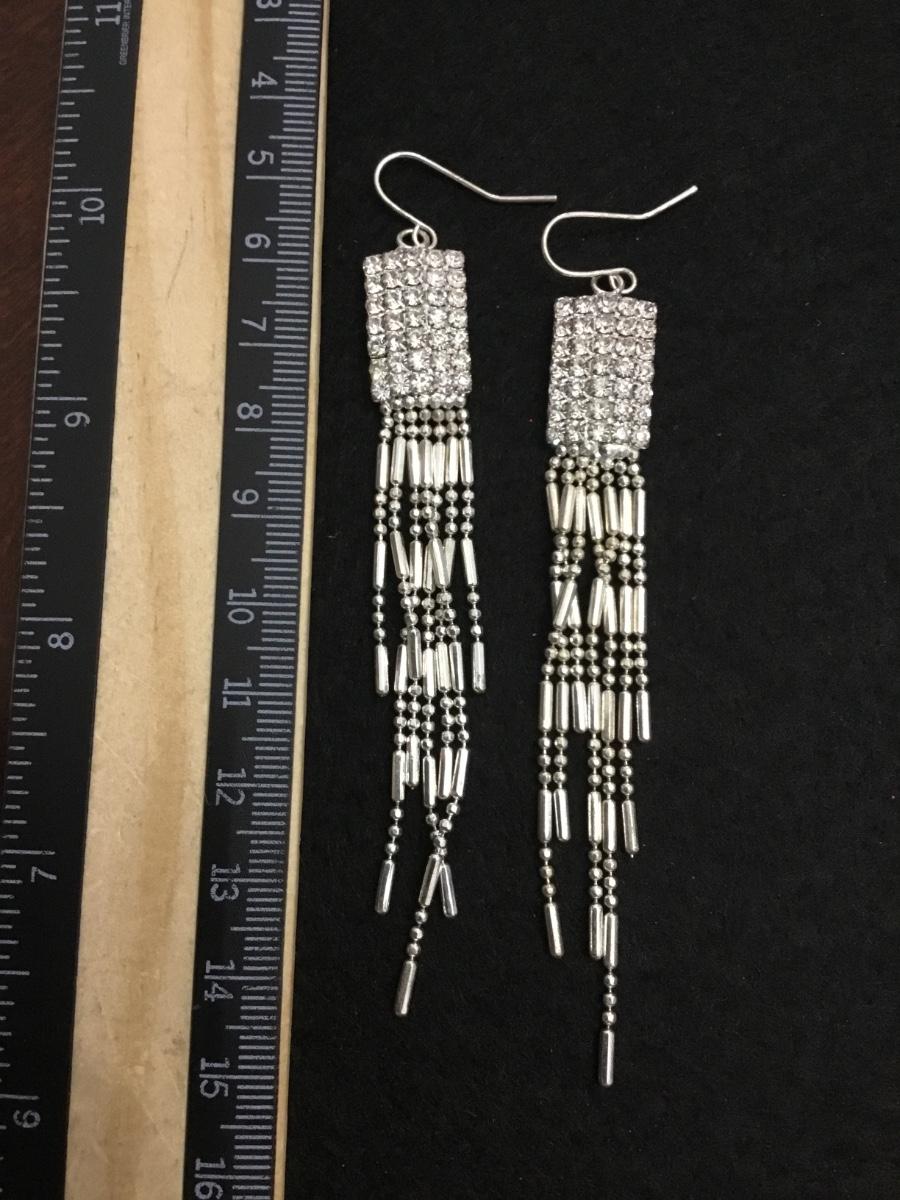 Beautiful , Silver-tone rhinestone dangling tassel statement earrings