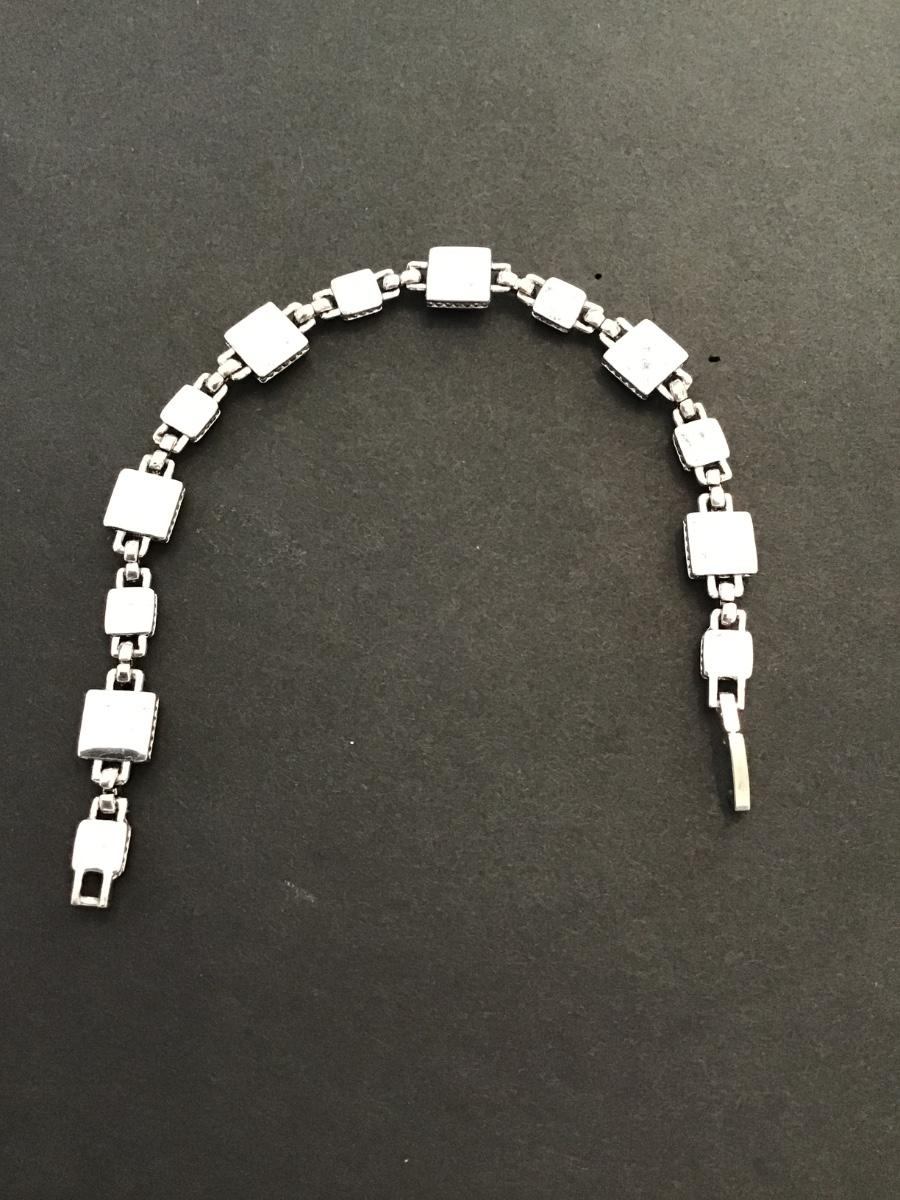 Beautiful Silvertone faux plastic stone tennis bracelet. Please see attached photos.