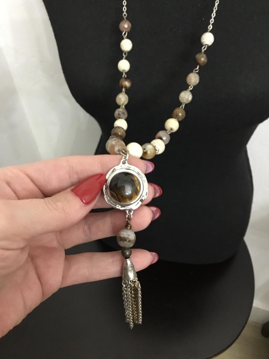 Beautiful, Silvertone, tigers eye, stone bead, tassel necklace