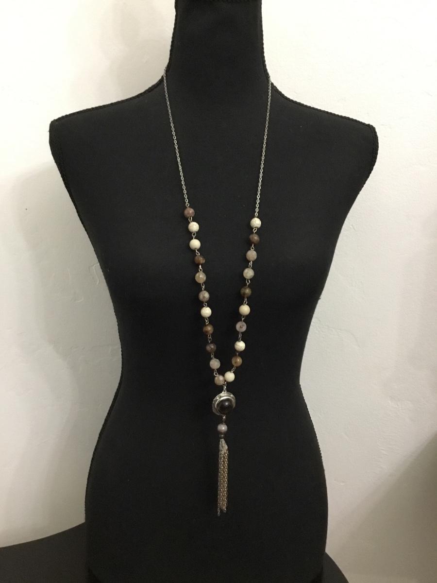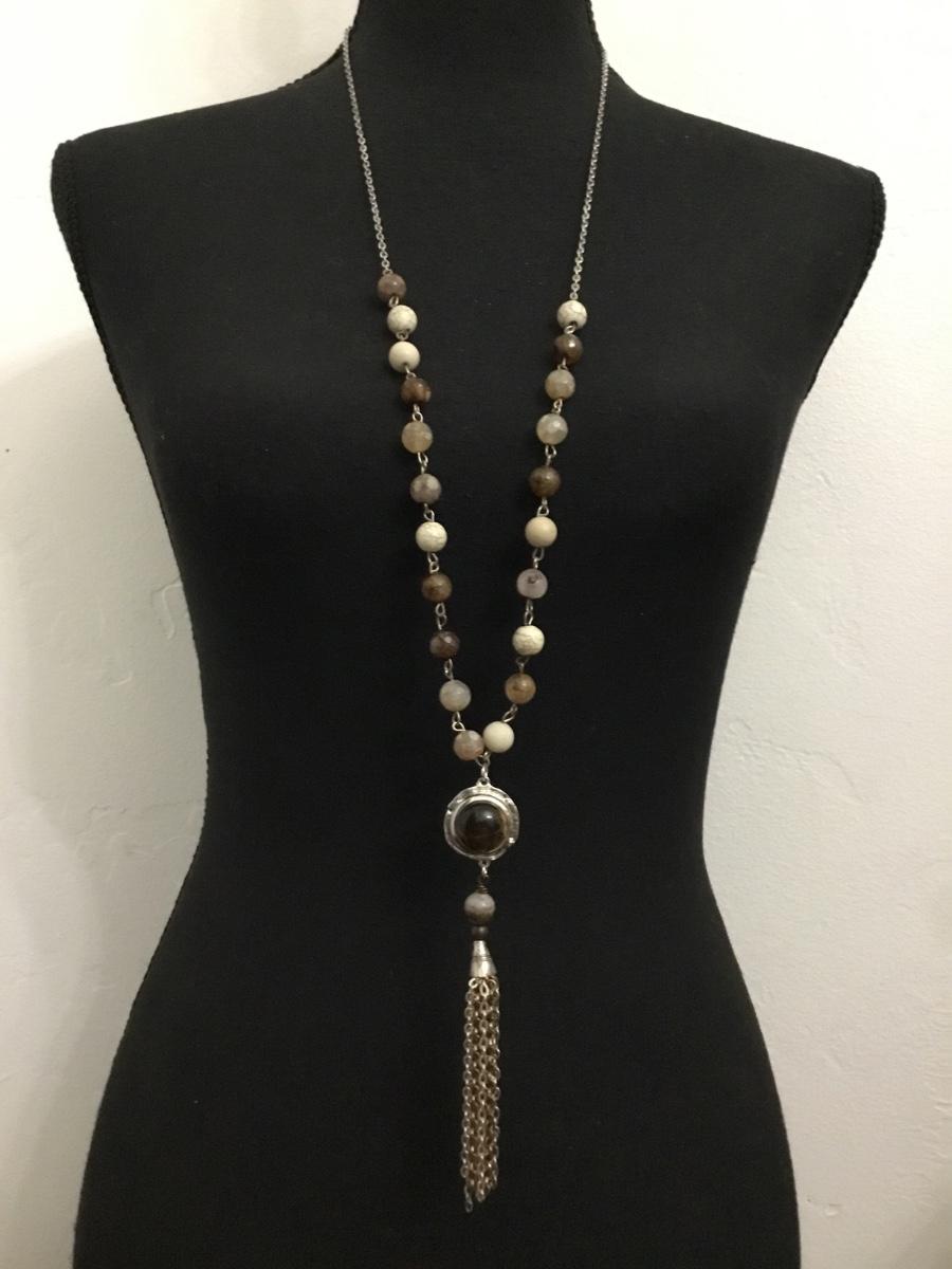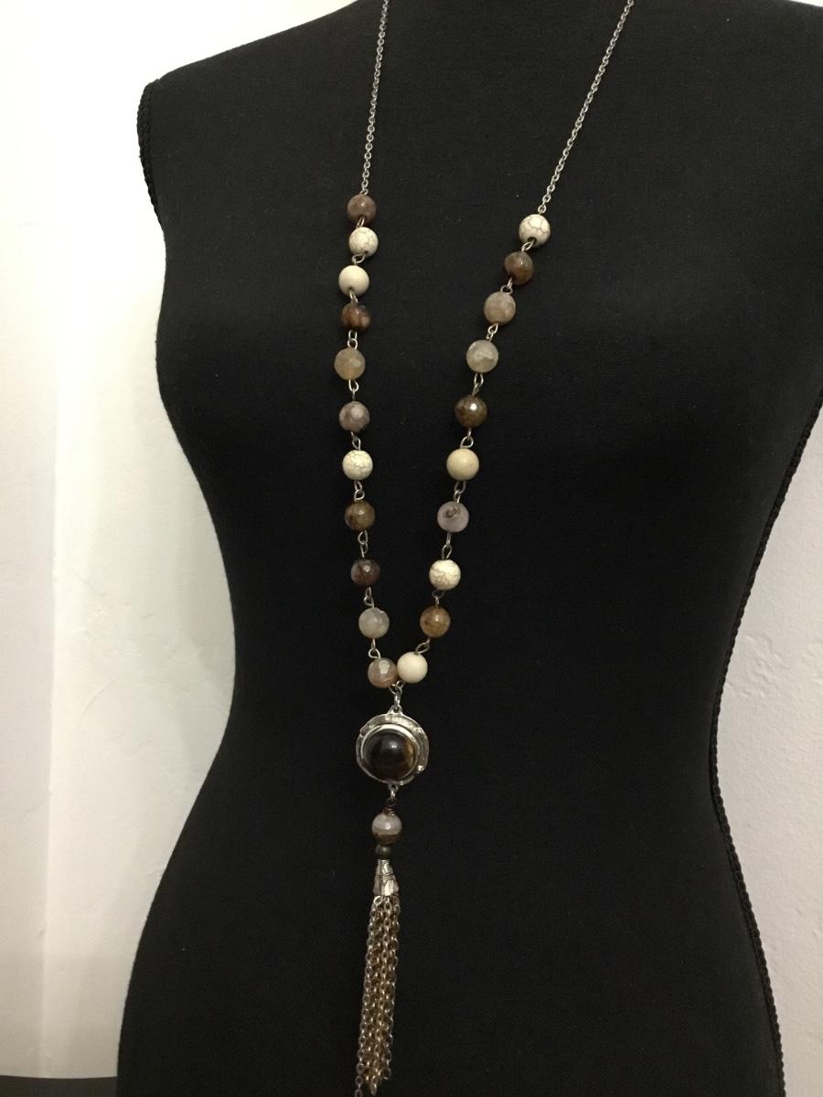 Beautiful, Silvertone, tigers eye, stone bead, tassel necklace