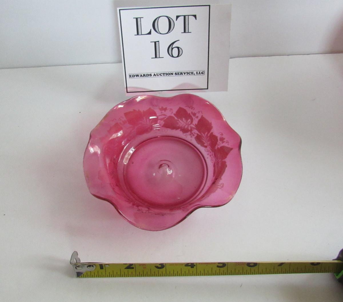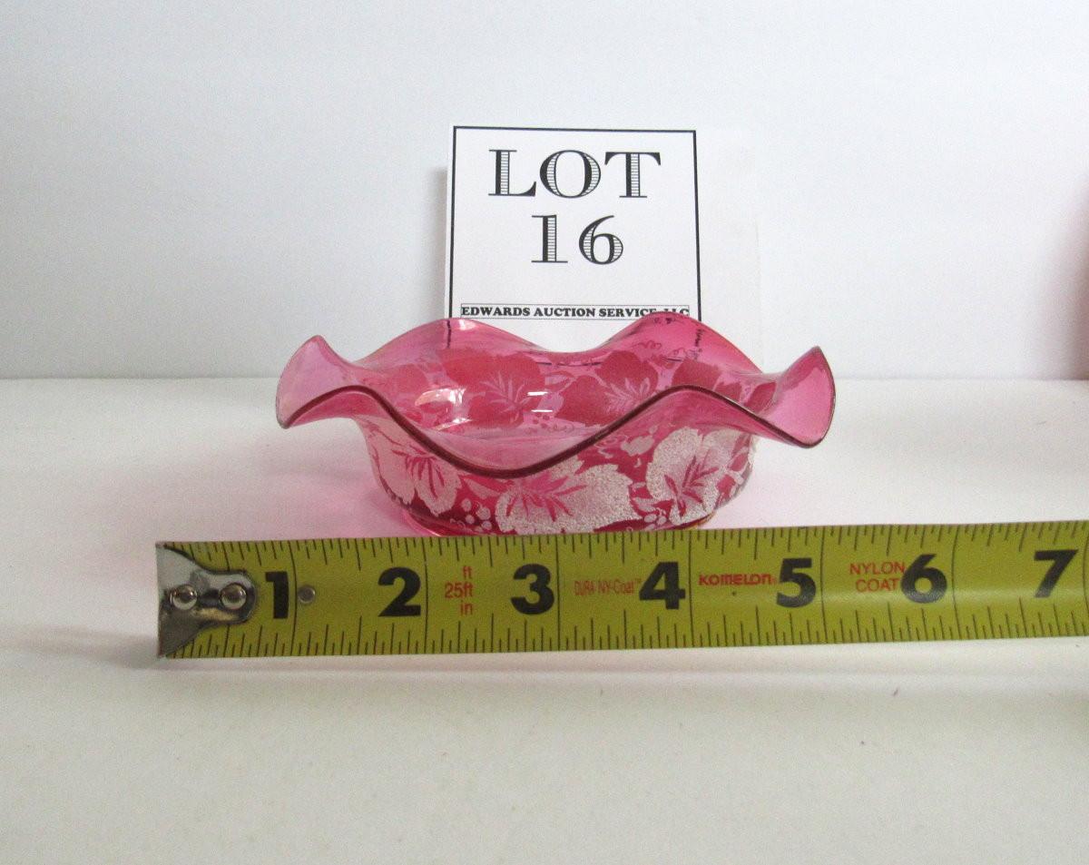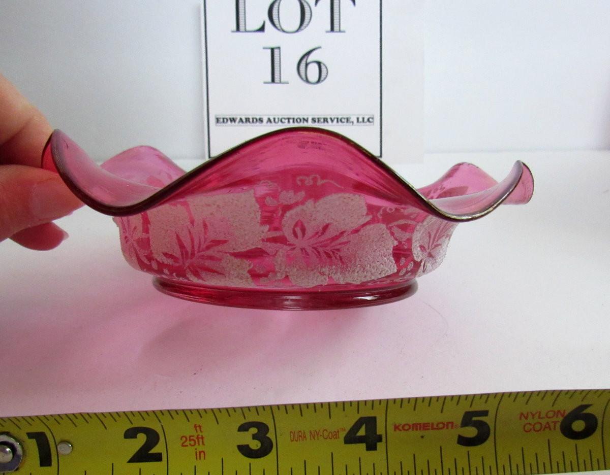Beautiful Small Antique Cranberry Glass Bowl With Beaded Leaf Finish, Great Pontil