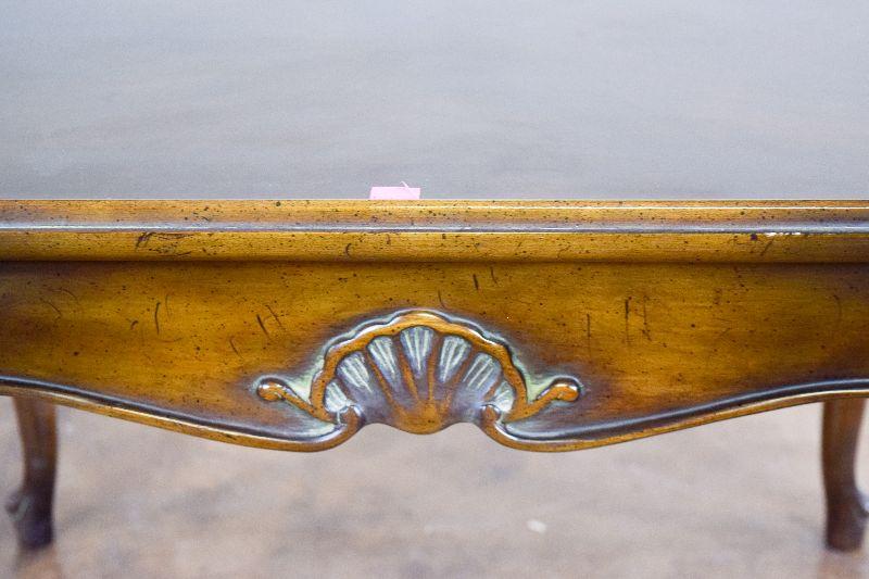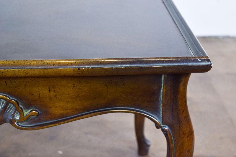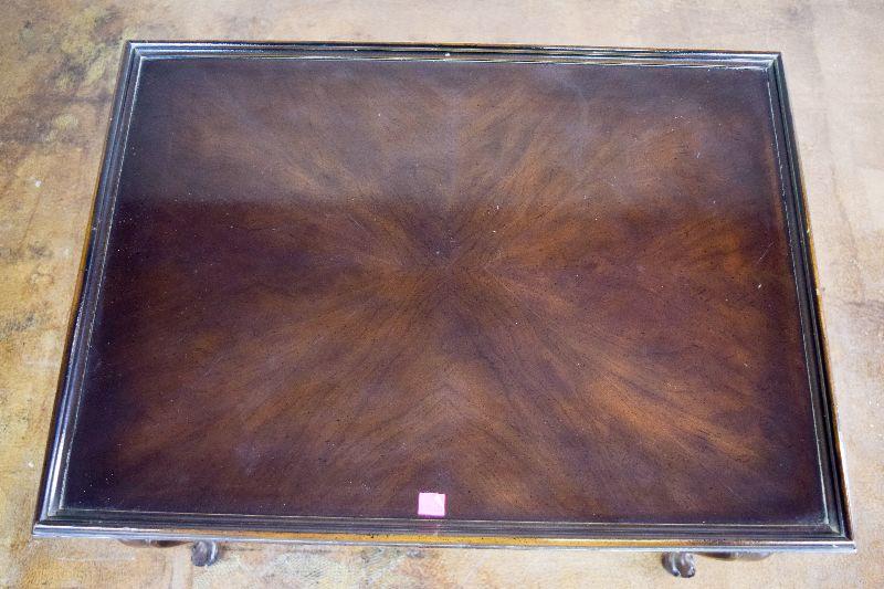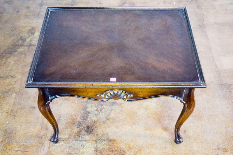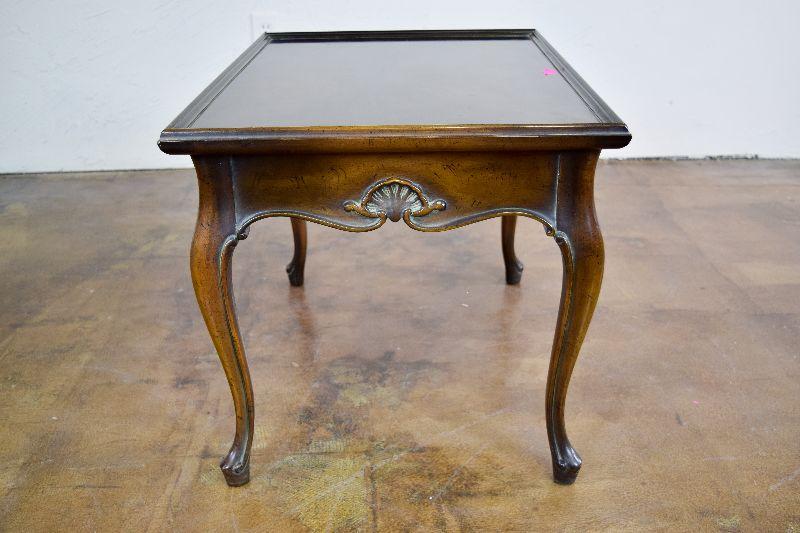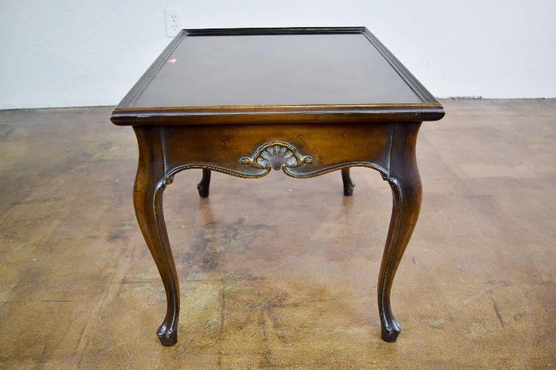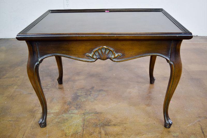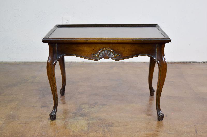 This beautiful table has general signs of wear from usage and display. It measures approximately 26" wide X 19" deep X 19" tall. The style number of the piece is 1505-66