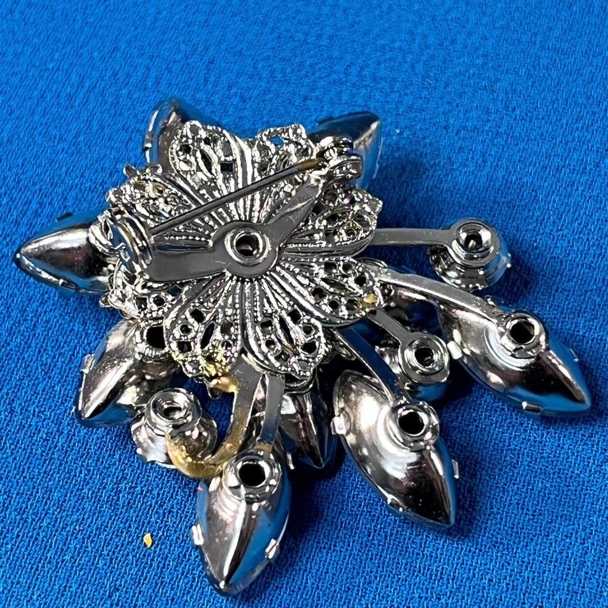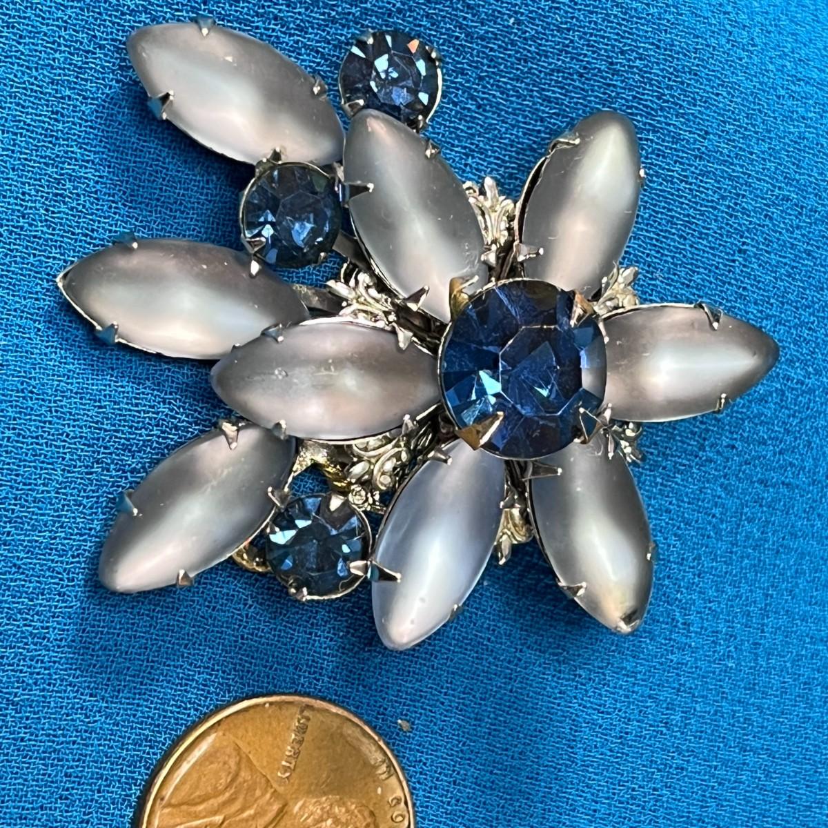 BEAUTIFUL SMOKEY BLUE SPLAY PIN FOOTBALL SHAPED GLASS ALL PRONG SET